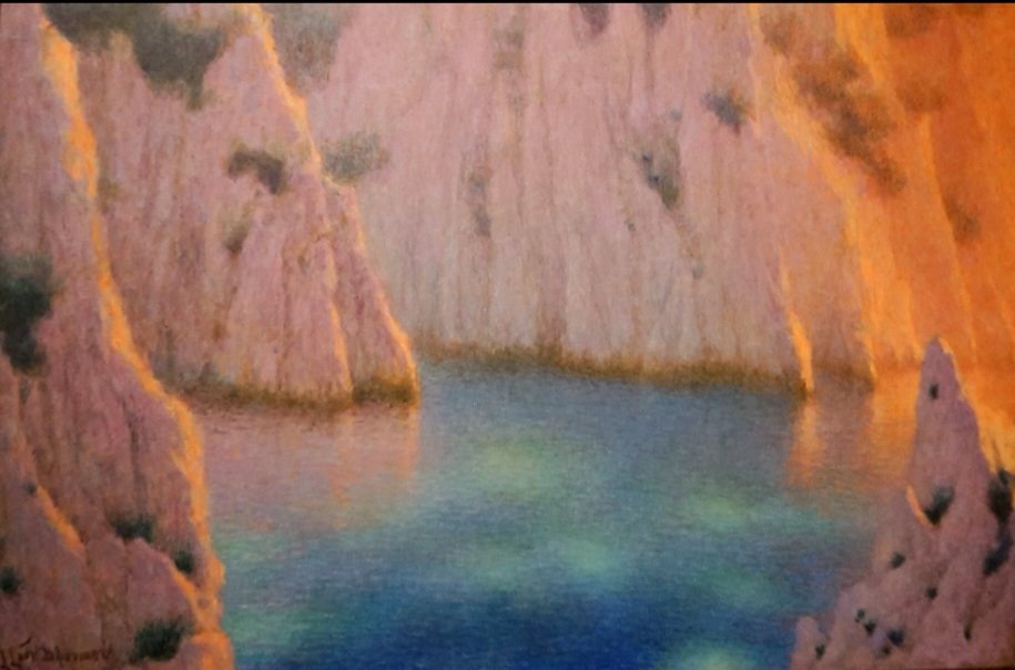 24. September 202324. September 2023 Artist of the Day: LUCIEN LÉVY-DHURMER Heute vor genau 70 Jahren starb der französische Symbolist LUCIEN LÉVY-DHURMER (1865-1953). Sein Landschaftsbild „Calanque“ sah ich 2015 im Musée d’Orsay in Paris. Teilen mit: Klicke, um auf X zu teilen (Wird in neuem Fenster geöffnet) X Klick, um auf Facebook zu teilen (Wird in neuem Fenster geöffnet) Facebook Gefällt mir Wird geladen … Veröffentlicht von yvonnenodaywithoutfinearts Oberstudienrätin für Englisch und Französisch im Ruhestand. Kunstschaffend und -begeistert und reisefreudig Zeige alle Beiträge von yvonnenodaywithoutfinearts