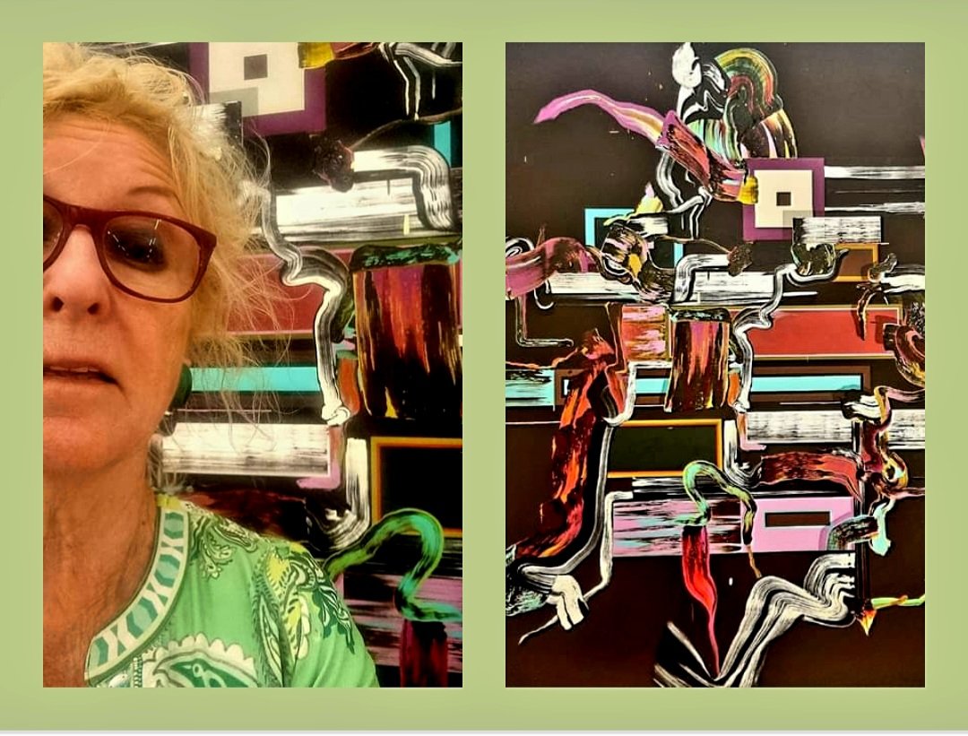 Heute wird die britische Künstlerin FIONA RAE (*1963) 60 Jahre alt. Ihr Werk „Evil dead 2“ von 1998, das nach Maschinen und Collage aussieht, ist mit Ölfarbe und Acryl entstanden und sehr groß, wie das Größenverhältnis von meinem Gesicht davor zeigt. Es hängt zur Zeit im MUDAM in Luxembourg (musée d’art moderne).