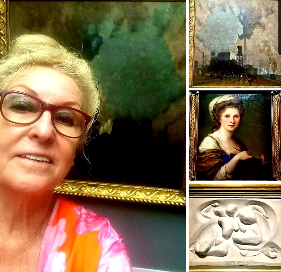 Zwei am 5.11. Verstorbene und ein Geburtstagskind – von allen dreien sah ich Kunstwerke in diesem Jahr: der in der Schweiz geborene deutsche Maler EUGEN BRACHT (1842-1921) starb heute vor 102 Jahren, die Malerin ANGELIKA KAUFFMANN (1784-1807) vor 206 Jahren, nachdem sie sich verblüffend erfolgreich in einer Zeit durchsetzte, als Frauen noch erheblichere Schwierigkeiten, in einer Männerwelt zu überleben hatten als heute. Der französische Maler und Bildhauer RAYMOND DUCHAMPS-VILLON (1876-1918) hätte heute Geburtstag. Sein Bruder Marcel wurde als Mitbegründer von Dada und Konzeptkunst berühmter. Sein Relief „die Liebenden“ schuf er im Jahr 1913. Ich sah es vor einer Woche in der Ausstellung der Reliefs in der Hamburger Kunsthalle . Angelika Kauffmanns Selbstportrait fiel mir in München in der Alten Pinakothek im Februar auf. Und vor Brachts Bild mit dem Titel „Hoeschstahlwerk Dortmund. Mittagspause“ von 1906 musste ich mich einfach fotografieren – im August in der Kunsthalle Mannheim .