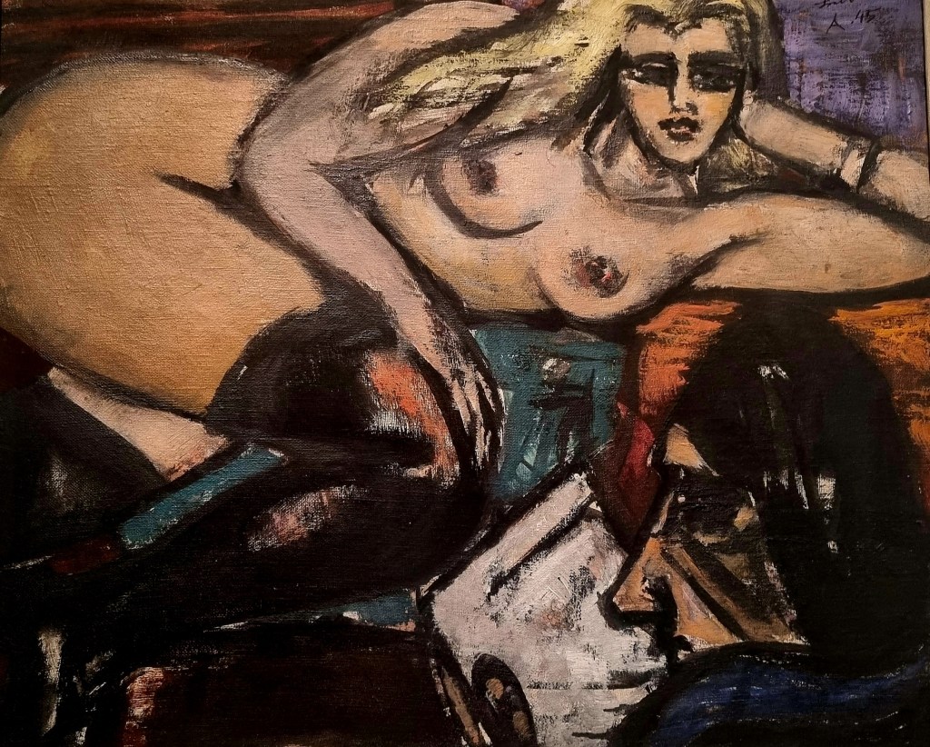 die Ausstellung zu zwei Künstlern einer Zeit – PABLO PICASSO (1881-1973) und MAX BECKMANN (1884-1950) – im Von Der Heydt-Museum Wuppertal – hier mit zwei ähnlichen Motiven. Einerseits Picassos Frühwerk „die Brieflektüre“, 1921 in Paris gemalt. Andererseits Beckmanns „Brief/liegender Halbakt“, 1945 im Amsterdamer Exil gemalt, und ein Bild, das ich schon immer in Wuppertal bewundert habe, weil es den Betrachter ganz in eine intime Situation hinein zieht. Ich habe es als „Hommage an Beckmann“ schon einmal selbst gemalt und in einen anderen Kontext gebracht. Es hängt zur Zeit im Restaurant Due Fratelli im Dortmunder Klinikviertel.