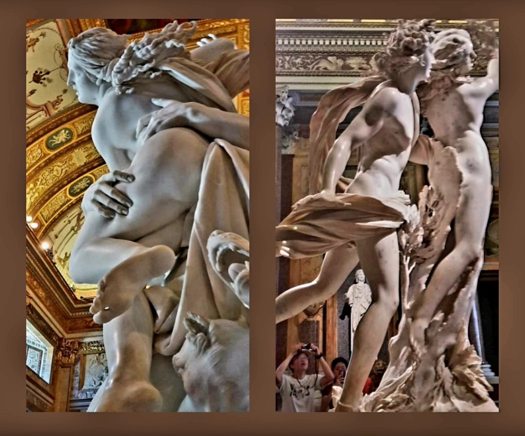 Heute ist der 425. Geburtstag des großartigen italienischen Bildhauers GIAN LORENZO BERNINI (1598-1680). Als ich 2015 in der Galleria Borghese in Rom zum ersten Mal diese Wunderwerke wie den „Raub der Proserpina“, wo die Marmorschenkel wie aus Fleisch und Blut erscheinen, oder die heitere Anmut von „Apoll und Daphne“, die der etwas über 20jährige Bernini aus einem Carrara-Marmorblock erschuf, sah, blieb mir tatsächlich für einige Minuten der Mund offen und der Atem fast stehen.