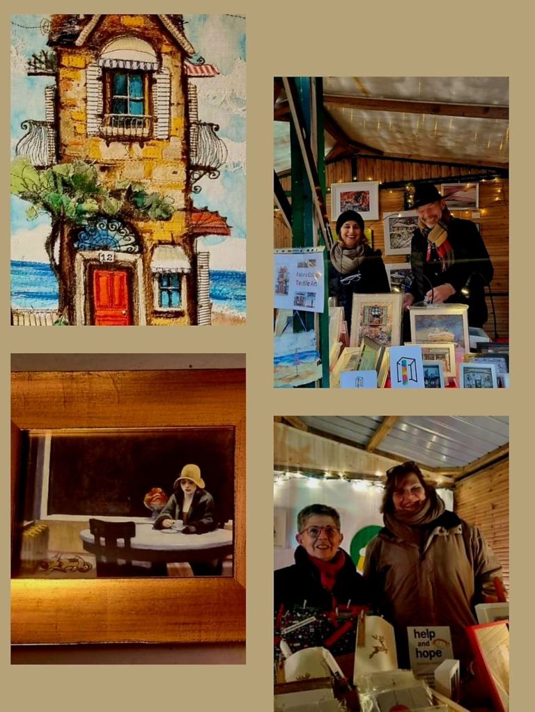 2 schöne Adventsmärkte in Dortmund mit wundervoller Kunst und meine legendäre Sammelleidenschaft haben dafür gesorgt, dass ich 2 neue Bilder an der Wand hängen habe: vor 2 Wochen kaufte ich auf dem Aplerbecker Nikolausmarkt – Am Haus Rodenberg 2023 von Maria Rouev ein bildschönes Textilbild eines „Traumhauses“ von der bulgarischen Künstlerin MARIETA STEFANOVA. Letztes Wochenende konnte ich mir nicht verkneifen auf dem Adventszauber am Zoo – Rombergpark 2023 bei CHRISTIANE KÖHNE eine hochwertig gerahmte hübsche Collage zu erstehen, bei der eine Schöne aus einem Hopperbild mit einem goldig verschlafenen Hund interagiert. „Gedankengänge“ heißt es.