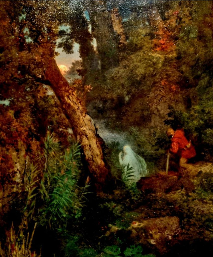 Heute ist der 123. Todestag des Schweizer Malers ARNOLD BÖCKLIN (1827-1901). Er hat mich immer schon in den Kunstmuseen von Basel, Bern und Zürich verzaubert. Dieses Bild „Irrlicht“ von 1882, das eine etwas unheimliche Atmosphäre verbreitet, sah ich im Dezember im Kunstpalast, Düsseldorf in der noch bis zum 21.1. gehenden Ausstellung „Tod und Teufel“.