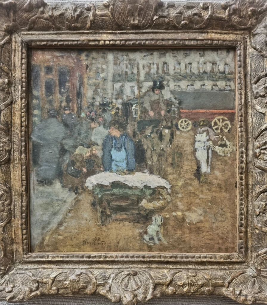 In der fabelhaften Art Deco Ausstellung des Mk&G Museum für Kunst und Gewerbe Hamburg sah ich neulich zwei Skulpturen des österreichischen Bildhauers RICHARD LUKSCH (1872-1936). Das 2. Geburtstagskind ist fast 100 Jahre später geboren: JONATHAN MEESE feiert heute den 54. Geburtstag. Seine beiden Bilder mit recht chaotischen Titeln hingen im Februar 2023 in München, Neue Pinakothek. Vor 80 Jahren genau starb ein Künstler, der zur Zeit in mehreren Ausstellungen zu sehen ist. Es ist der Norveger EDVARD MUNCH (1863-1944). Seine Lithographie „Todeskuss“ schuf er aber viel früher – im Jahr 1899. Ich sah sie 2021 in einem der zahlreichen Museen der Stadt Oldenburg.PIERRE BONNARD (1867-1947) starb etwas später. Er malte diesen niedlichen Pudel in einer Pariser StraßenszeneDas Bild ist Teil der beeindruckenden Impressionistensammlung der Villa Langmatt in der Schweiz.