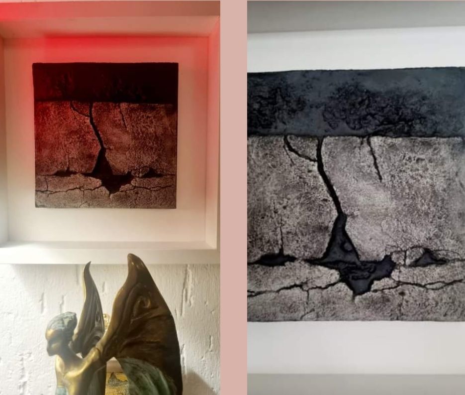 A new painting @ my wall: ich kann meine Sammelnatur ja nicht verhehlen: da stelle ich seit 12 Tagen zusammen mit Wolfgang Goebel aus, prompt gefallen mir seine „Maquetten“ genannten Abdrücke so gut, dass ich einen zu Hause haben muss😉🙃. Ich habe halt schon immer einen Blick für Gutes und Schönes gehabt, was man ja auch an der wunderschönen bulgarischen Skulptur aus der Künstlergruppe um Maria Rouev sieht, die davor steht. Übrigens: es gibt noch mehr von Wolfgangs Kunst im Raum für Kunst auf Zeit – am Aplerbecker Markt 6, immer von Don. – Sa. geöffnet. Don/Sa von 11-14h, freitags von 15-18h.
