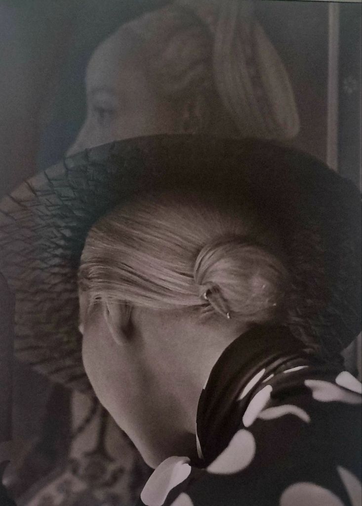 Dieses Foto faszinierte mich am meisten in der neuen Ausstellung im Museum für Kunst und Kulturgeschichte MKK in Dortmund der Dortmunder Fotografin ANNELISE KRETSCHMER (1903-1987): „Frau mit Hut“ (1930) mit dem Hintergrund der gemalten Dame mit ähnlicher Frisur, eventuell ein Botticelli oder di Cosimo