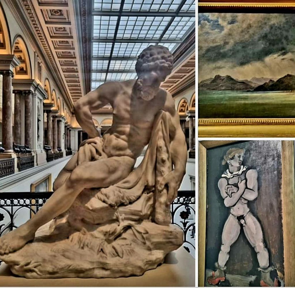 es ist der Todestag des belgischen Bildhauers LAURENT DELVAUX (1696-1778), dessen Version des ruhenden Herkules ich im vergangenen September in der Abteilung der alten Meister der Musées royaux des beaux-arts de Belgique in Brüssel sah. Genau 10 Jahre nach dessen Tod kam der 2. Künstler auf die Welt: der norwegische romantische Maler JOHAN CLAUSEN DAHL (1788-1857), ein enger Freund des in diesem Jahr so gefeierten Caspar David Friedrich. Seine „Gewitterlandschaft“ fotografierte ich vor ungefähr einem Jahr im Kunstpalast, Düsseldorf. Ein Werk des dritten Künstlers, der heute seinen 125. Geburtstag feiern könnte, sah ich genau vor einem Jahr: am 24.2.23 war ich nämlich in München in der Pinakothek der Moderne, nicht ahnend, dass es der Geburtstag des Malers HELMUT KOLLE (1899-1931) war.
