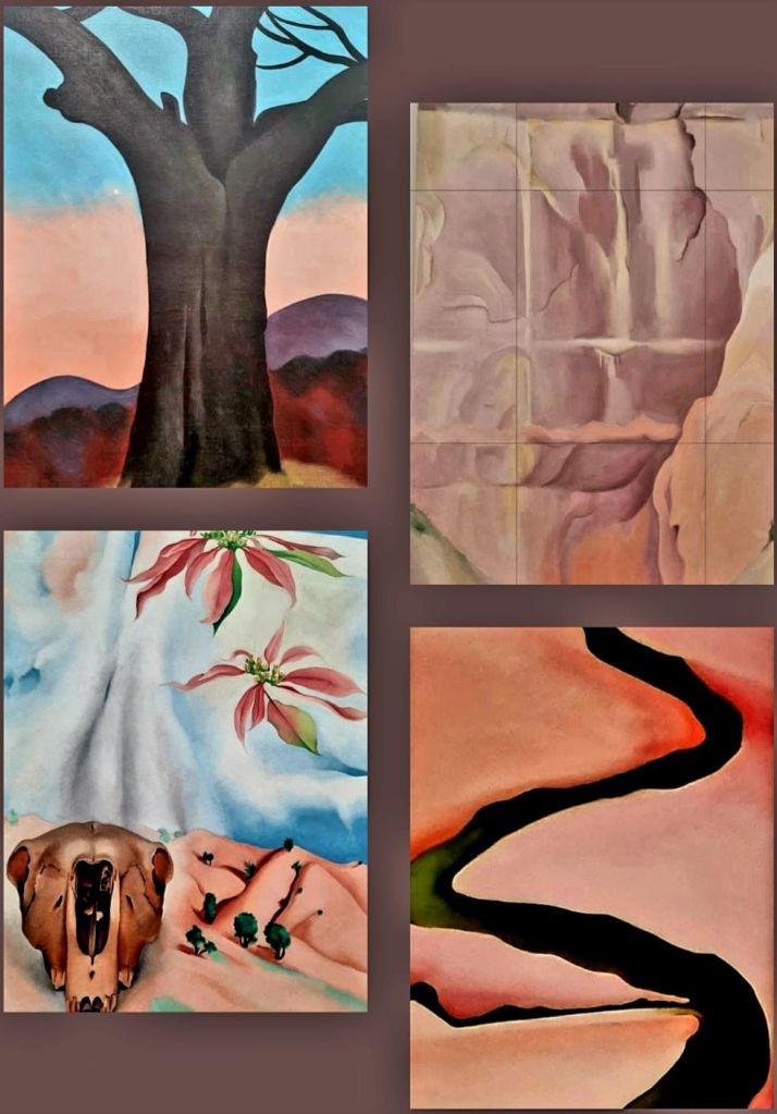 GEORGIA O’KEEFFE (1887-1986) starb heute vor 38 Jahren im Alter von 98 Jahren. Ich schätze ihre Bilder überaus in ihrer herrlichen Farbigkeit und den harmonischen Formen. Betrachtete man ihre Ausstellung 2022 in der Fondation Beyeler in Riehen bei Basel, merkte man auch, dass sie bestimmte Farben besonders mochte: alle Rot und Rosatöne – vor allem ganz helles Rosa wie in den ausgewählten Bildern, die ich dort fotografierte: „The Chestnut Tree“ von 1924, „Mule’s Skull and pink Poinsettias“ von 1936, „Waterfall“ von 1944 und „Pink and Green“ von 1960.