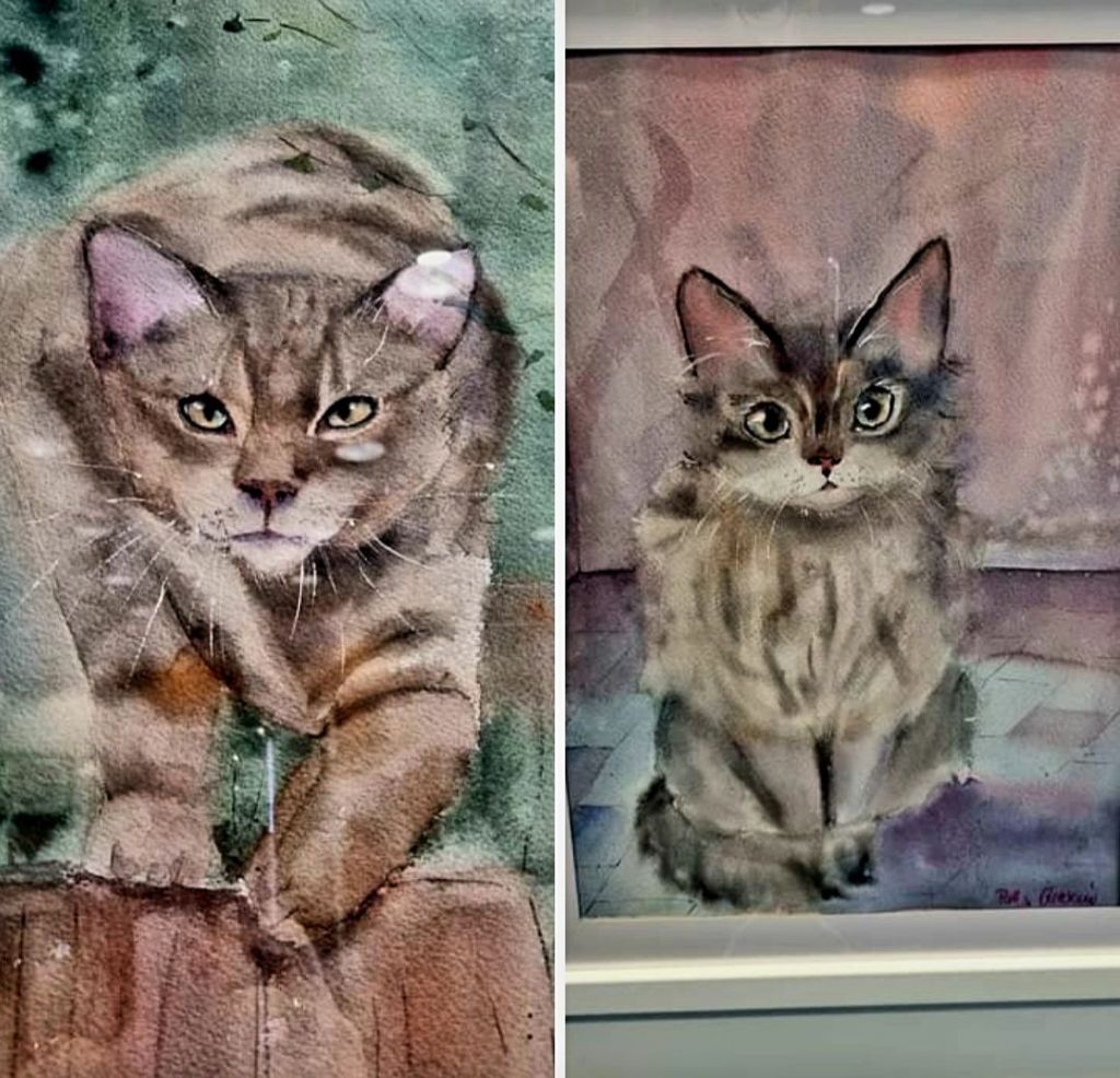 Entzückende Katzenaquarelle sind zur Zeit im Raum für Kunst auf Zeit in Dortmund-Aplerbeck zu sehen, Aplerbecket Marktplatz 6 – gemalt von PATTY GHASEMI.
