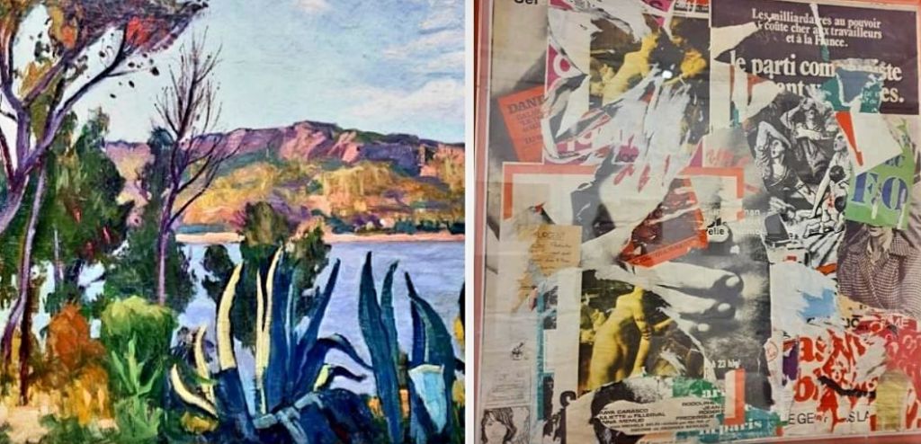 Zwei Künstler, zwischen deren Werken 70 Jahre liegen und die beide heute Geburtstag hätten: der französische Mitbegründer des Fauvismus ALBERT MARQUET (1875-1947) mit seinem 1905 entstandenen Bild „Vue d’Agay“ (gesehen im September 2023 im Kunstmuseum Basel ) und der aus der Bretagne stammende Collagist und Décollagist JACQUES DE LA VILLEGLÉ (1926-2022) mit seiner 1975 entstandenen Décollage „Rue Pierre Lescot“ (gesehen im Sprengel Museum Hannover im Juni 2020) Die Straßennamen in seinen Titeln bedeuten zumeist, dass er dort das Plakatmaterial gefunden hat, das er für seine Werke brauchte.