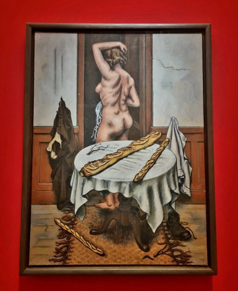 der Franzose JEAN (BICHIER) HÉLION (1904-1987) würde heute 120 Jahre alt. 1952 malte er „Dos aux Pains“, was Rücken mit Broten bedeutet. Sicherlich wollte er die Ähnlichkeit zwischen dem Körper und den Brotlaiben verdeutlichen. Allerdings sieht man auch einen Rock, ein Herrenhemd und einen Herrenstiefel auf dem Bild, so dass es dem zeitweiligen Ehemann der Peggy Guggenheim-Tochter Pegeen wohl doch auch um Aussagen über das Verhältnis der Geschlechter ging. Dieses Bild, das normalerweise in der Tate Gallery hängt, war vor kurzem noch in der Ausstellung „Nudes“ vom LWL Kunstmuseum Münster zu sehen.