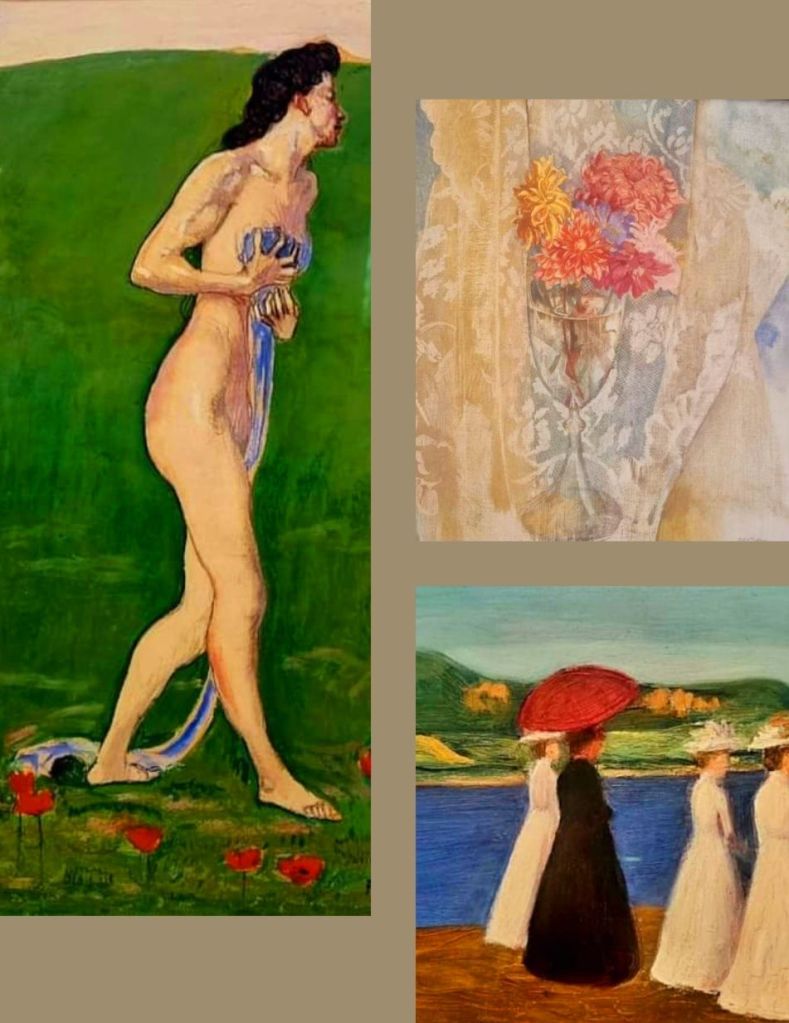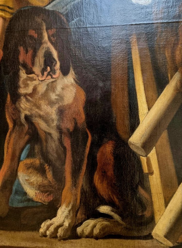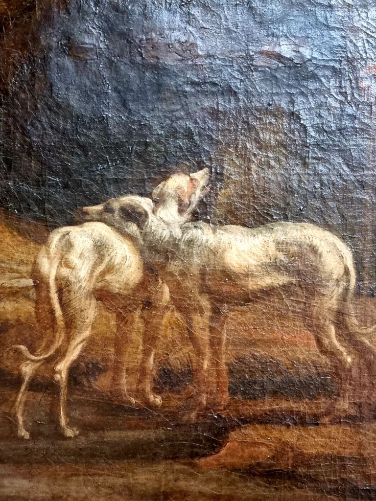 Diese 3 Kunstwerke passen zwar gut zu dem Feiertag – eine Frau in der Blumenwiese („Empfindung“ um 1903) von FERDINAND HODLER (1853-1918), „Chrysanthemen vor einem Spitzenvorhang“ (1917) von MAX OPPENHEIMER (1885-1954) und ein Spaziergang an der Seine von GABRIELE MÜNTER (1877-1962) – doch scheint der 19.5. ein gefährlicher Tag für Künstler zu sein: für alle 3 war es der Todestag. Das Bild von HODLER hing letztens im Von Der Heydt-Museum Wuppertal, das OPPENHEIMER Bild sah ich in der Schweiz in der Villa Langmatt und MÜNTERS „Promenade“ entdeckte ich bei den „Maestras“ im Arp Museum Bahnhof Rolandseck vor wenigen Tagen.Und der 4. Künstler ist der einzige der Gruppe, der heute Geburtstag hat: der Antwerpener Maler JACOB bzw. JACQUES JORDAENS (1593-1678). Diese schönen Hundeportraits sind Teile von großen detailreichen Bildern zur griechischen Mythologie, die ich im September 2023 in Brüssel in der Abteilung der Old Masters der Musées Royaux des Beaux Arts de Belgique sah.
