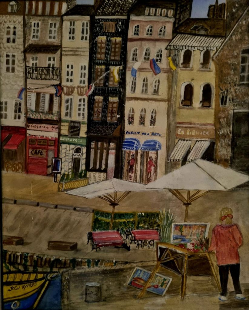 Eine Künstlerin des Tages ist heute unter anderen meine Mutter KAROLA WILKEN (1929-2014), die am 25.5. Geburtstag hatte. Sie malte mit Öl und Gouachefarben. Zwei meiner Lieblingsbilder von ihr ist der „Herbstwald“ und „Honfleur“, in das sie mich als Freiluftmalerin hineinmalte. Ihr „Portrait mit Zigarette“ wurde von mir 5 Jahre nach ihrem Tod gemalt. Das Foto zeigt sie mit unserem Dackel, der heute auch Daily Dog ist, in unserem letzten gemeinsamen Sommerurlaub in Sankt Petet-Ording.