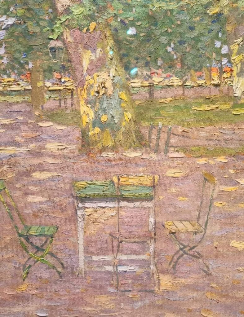 Werke von 3 weiteren Künstlern des Tages fotografierte ich neulich in Wien: Geburtstag hat heute der Künstler ANDREAS DUSCHA. Seine spiegelnde „Tulpenmanie“ von 2022 sah ich in der Heidi Horten Collection. Die anderen beiden Künstler, deren Todestag der 15.6. ist, fand ich im Wien Museum: MAX UTH (1863-1914) mit dem einladenden „Biergarten“ (Detail) und ERNST LUDWIG KIRCHNER (1880-1938), vor dessen farbschönem Bahnhofsbild ich stehe.