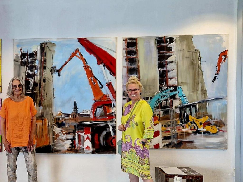 Mit der französischen Künstlerin MONIQUE CASTAGNÉ aus Schwerte vor ihren großen genialen Baustellenbildern im Raum für Kunst auf Zeit