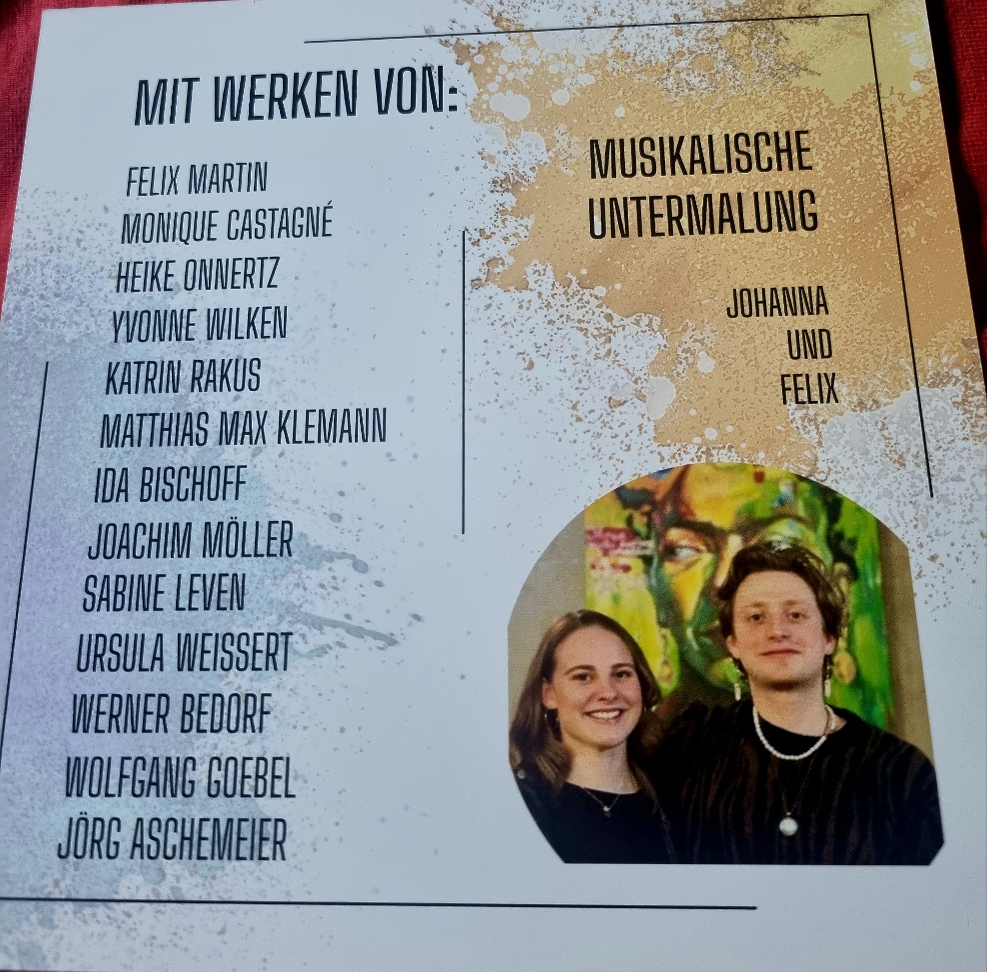 IDA BISCHOFF kommt, MELANIE DIEDERICHS geht vorübergehend, Katrin Rakus hängt jetzt im Hauptraum neben mir – es lohnt sich immer, uns hier zu besuchen, es gibt immer wieder Neues (donnerstags und samstags 11-14 Uhr, freitags 15-18 Uhr). GANZ BESONDERS wird es sich lohnen, am Samstag, 13.7.uns zu besuchen, denn dann gibt es ein SOMMERFEST ab 19 Uhr mit Kunst und Musik (von unserem auch ausstellenden Künstler FELIX MARTIN)