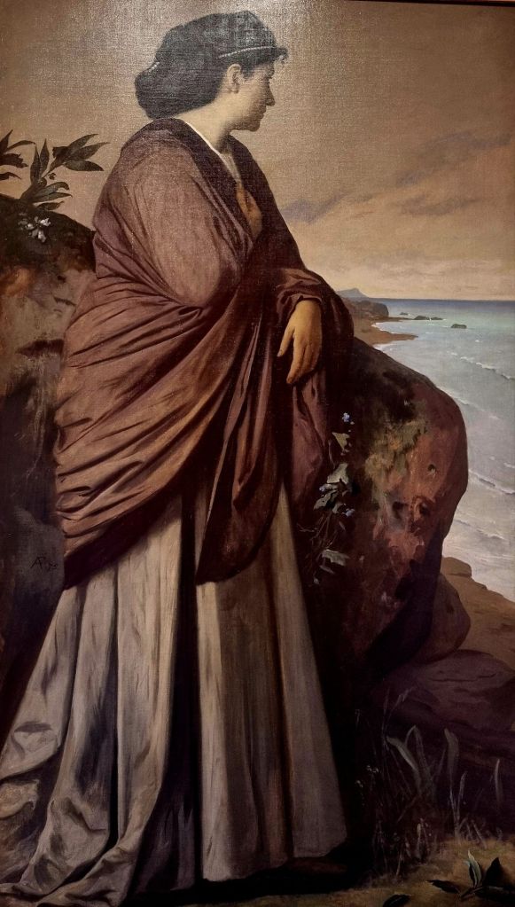 Ein Deutscher, ein Belgier und ein Niederländer sind heute Geburtstagskinder: einer meiner deutschen Lieblingsmaler aus dem 19. Jahrhundert ist dabei, der allerdings selbst oft über mangelnde Anerkennung klagte: ANSELM FEUERBACH (1829-1880). Er hat romantische Portraits und Bilder von Liebespaaren geschaffen, mythologische und literarische Personen gemalt wie Hafiz (was mich zu einer Hommage für die persischen Frauen führte, vgl.20.8.24) und Goethes Iphigenie auf Tauris, der er hier im etwas schwermütigen Bild „Am Meer (Moderne Iphigenie)“ von 1875 ein Denkmal bietet. Ich besuchte neulich auch seine schöne Geburtsstadt Speyer, sah aber dieses Bild vor kurzem im Kunstpalast, Düsseldorf, wo er auch eine Zeitlang gelebt hat.