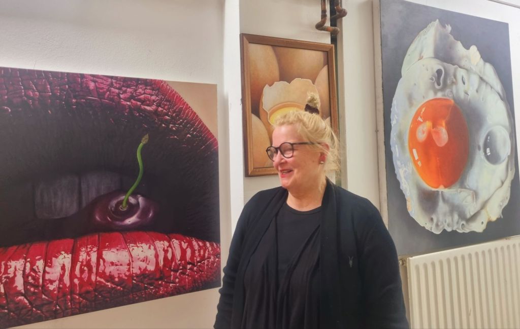 Gestern traf ich die fotorealistische Malerin, die in Warendorf ansässig ist, in ihrer Dortmunder Ausstellung: MECHTHILD DARQUENNE-DANWERTH, auch unter m.dada zu finden, was sich nicht unbedingt auf ihren Malstil, sondern auf ihre Namensabkürzung bezieht. Doch Humor hat sie auch (wie die Dadakunst).