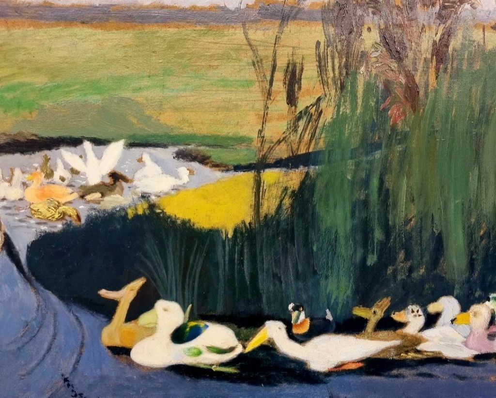 Heute gibt es 2 Geburtstagskinder, die beide unterschiedliche Zeiten im Künstlerort Worpswede verbracht haben und sich daher wahrscheinlich niemals getroffen, geschweige denn ihren Geburtstag gemeinsam gefeiert haben: die deutsche Malerin OTTILIE REYLAENDER (1882-1965) und der Niederländer BRAM VAN VELDE (1895-1982), dessen „Sonnenblumen“ von 1923 genau wie Reylaenders „Enten“ von 1904 in der Großen Kunstschau Worpswede zu sehen waren.