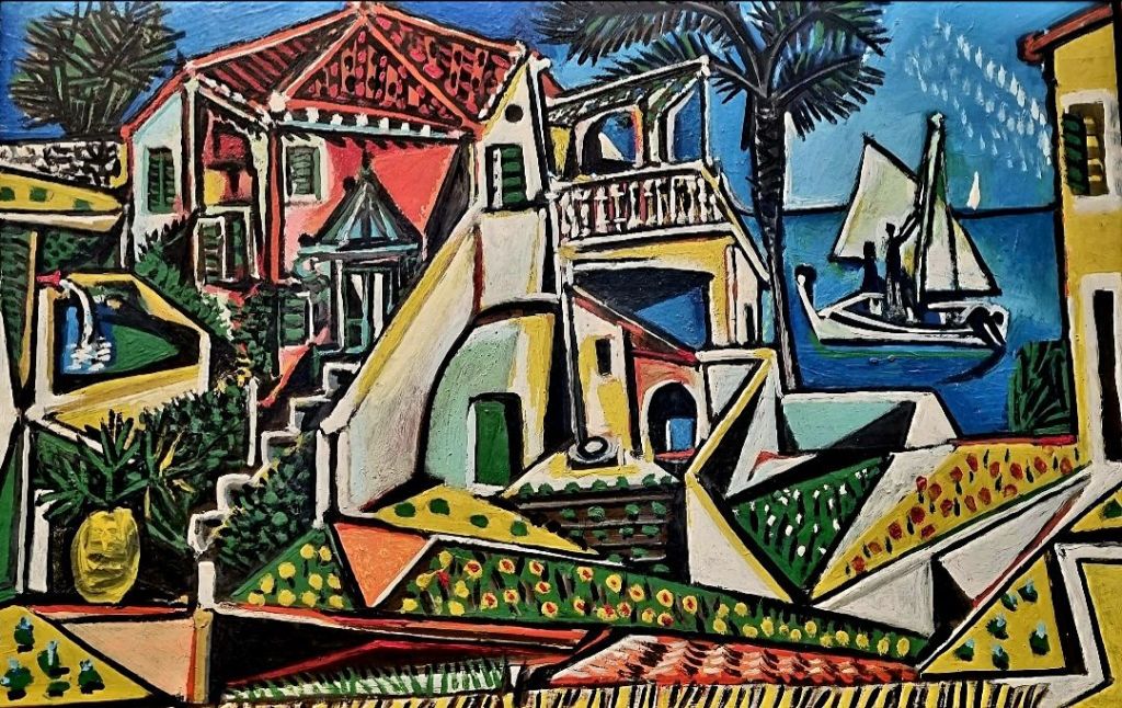 Ein reichhaltiger Tag für die Geburt großer Talente: gleich würden heute Geburtstag feiern – und alle 3 sind im 19. Jahrhundert geboren: am frühesten der Frankfurter Maler CARL MORGENSTERN (1811-1893), ein Verwandter des Dichters Christian Morgenstern, sein beeindruckendes Bild vom Wasserfall in Tivoli bei Rom von 1872 sah ich im letzten Jahr in meinem Lieblingsmuseum seiner Geburtstadt Frankfurt – im Städel Museum. Die beiden anderen Meisterwerke fotografierte ich in diesem Mai in Wien: den stimmungsvollen „Grunewaldsee“ von 1895 im Wien Museum, die „Mittelmeerlandschaft“ von 1952 im Albertina Museum – eines der wenigen reinen Landschaftsbilder vom berühmtesten der 3 Geburtstagskinder PABLO PICASSO (1881-1973). Die Seenlandschaft stammt von WALTER LEISTIKOW (1865-1908) und ist von beeindruckender Farbauswahl und Tiefe, außerdem im großen Format, so dass ich mich gerne davor fotografiert habe.