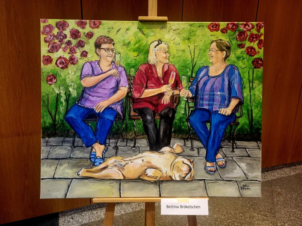 Heute ab 17 Uhr werden wir im Aplerbecker Raum für Kunst auf Zeit auch der verstorbenen Leiterin der Dortmunder Mitternachtsmission gedenken: Jutta Geissler-Hehlke, die in diesem Bild, das Malende Bettina BRÖKELSCHEN von ihr malte, von einem niedlich entspannt liegenden Hund begleitet wird. Die Entspannung ist geradezu spürbar❣️