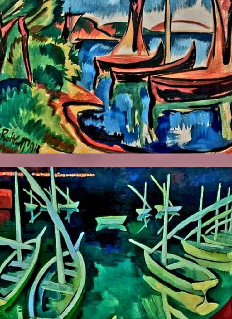 KARL SCHMIDT-ROTTLUFF (1884-1976) hätte heute den 140. Geburtstag. Er liebte es offensichtlich, Boote zu malen. Sein Stil war deutlich expressionistisch – sowohl bei den Booten von 1913, die ich 2024 im Osthaus Museum Hagen sah, als auch bei den nächtlichen Booten von 1930, die mir 2023 im Hessischen Landesmuseum Wiesbaden auffiel.