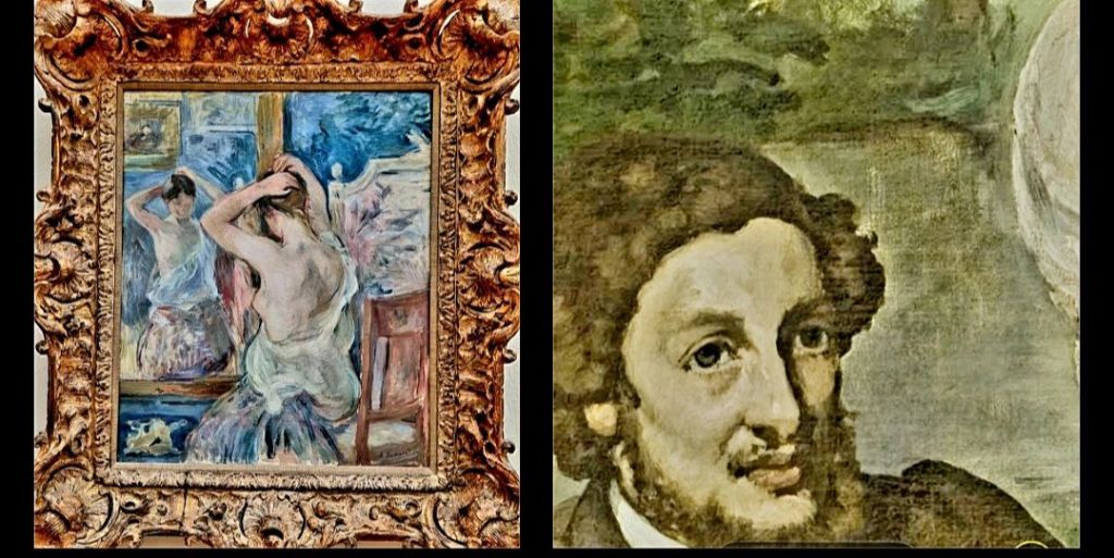 Ich weiß nicht mehr genau, in welcher Künstlerbiographie ich es gelesen und mir notiert habe: heute vor genau 150 Jahren heiratete die Impressionistin BERTHE MORISOT (gerahmtes Bild, 2021 in einem Schweizer Museum gesehen) den Bruder ihres Künstlerkollegen Manet, EUGÈNE MANET (der Mann links in Manets Bild „Frühstück im Grünen“, gesehen im Pariser Musée d’Orsay 2016 ) Es ist mir wieder eingefallen: das Hochzeitsdatum 22.12.1874 stand im Buch „Die Malerin des Lichts“ von Agnès Gabriel.