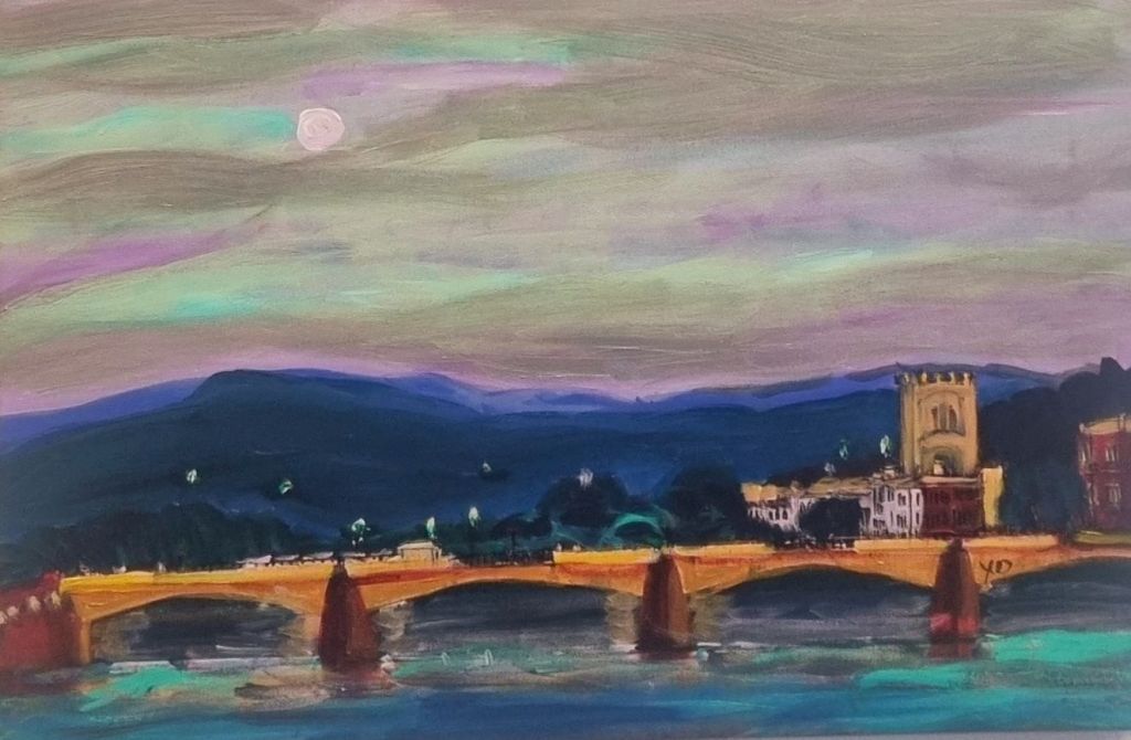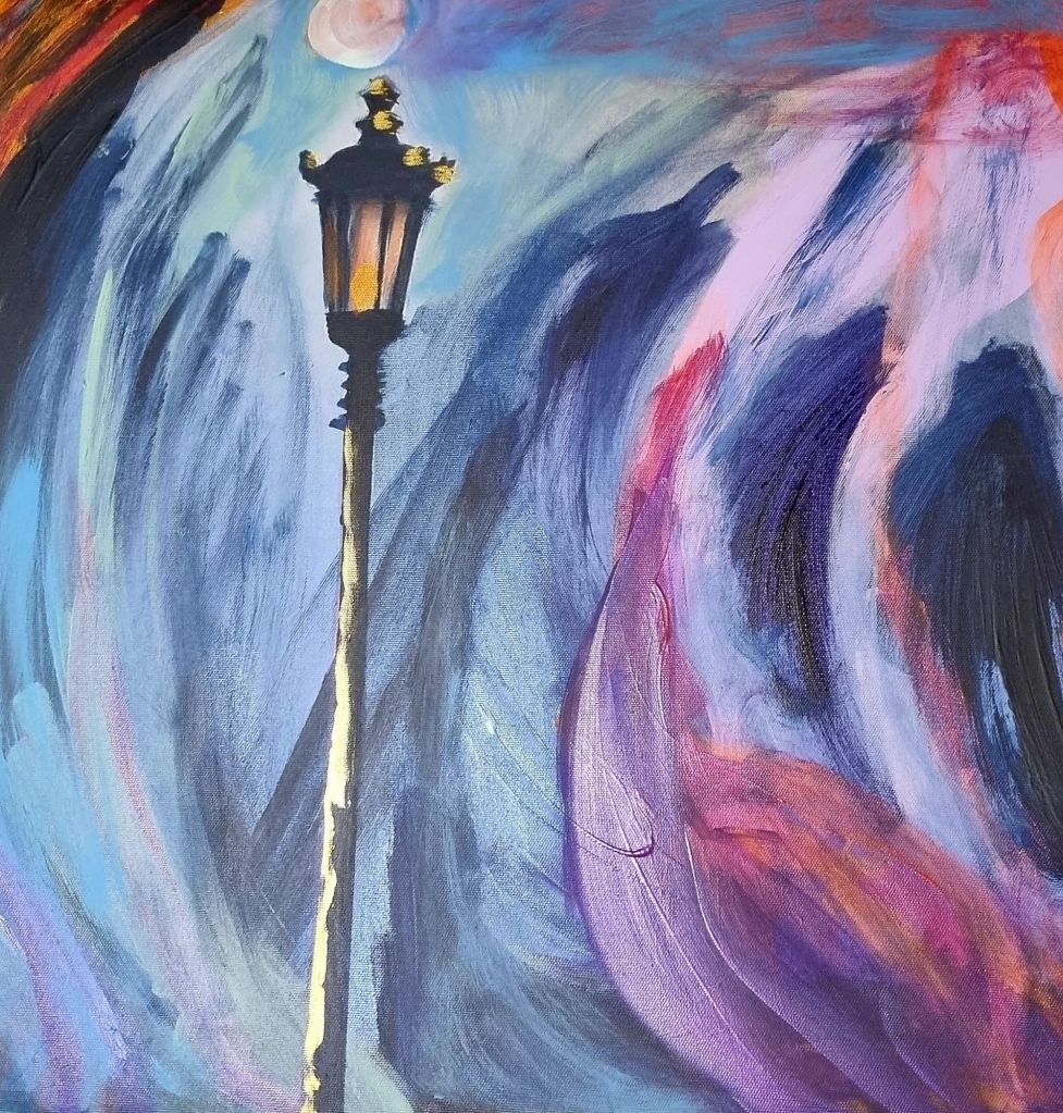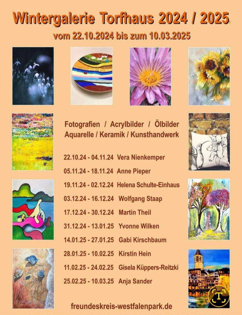 von Silvester an sieht man YvonneWilkenPaintings im beleuchteten Schaufenster der Galerie Torfhaus, Westfalenpark: 2 Wochen lang bis zum 13.1.25 (bis 7.1.gibt es das schöne Winterleuchten im Westfalenpark dazu).Greek Lantern/Friends/Florenz
