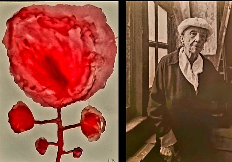deren Lebenszeit 4 Jahrhunderte abdeckt, alle 3 hatten am 1. Weihnachtstag Geburtstag: der französische Keramikkünstler CHARLES-JEAN AVISSEAU (1795-1861), der Münchner Maler ERWIN STEINER (1893-1953) und die französisch-amerikanische Malerin, Bildhauerin und Installationskünstlerin LOUISE BOURGEOIS (1911-2010). Als Sohn eines Fischers modellierte Avisseau gerne Tierwelten auf seinen Tellern: hier dem Titel nach „Kreuzotter, Käfer und Schnecken“, obwohl mir eigentlich der Salamander als erstes auffiel – gesehen vor fast genau einem Jahr im Museum für Kunst und Gewerbe Hamburg. Die beiden Werke Steiners, darunter ein „Selbstbildnis“, sah ich im Februar 2023 in einer speziellen „19. Jahrhundert“-Ausstellung des Lenbachhaus und Kunstbau München. Die durchaus provozierende Kunst von Louise Bourgeois war im letzten Oktober Thema einer Retrospektive im Museo Novecento Firenze. Ich habe zwei Beispiele ausgesucht, die im hohen Lebensalter (um 2009) entstanden: aus dem „Les Fleurs“-Zyklus und „And so I kissed you“. Beeindruckend, dass auch diese Künstlerin – ähnlich wie der gestrige Künstler des Tages Pierre Soulages – bis ins hohe Alter (sie starb im 99. Lebensjahr) künstlerisch aktiv war.
