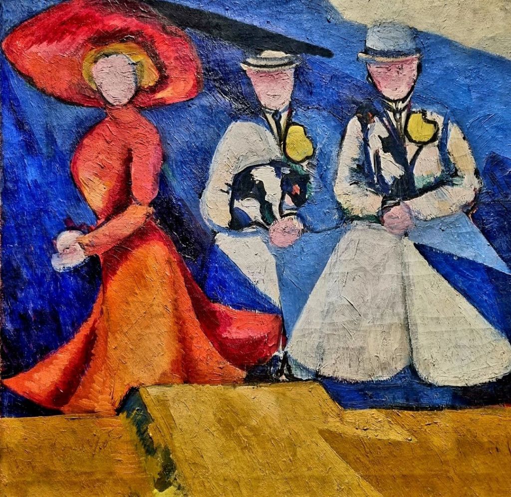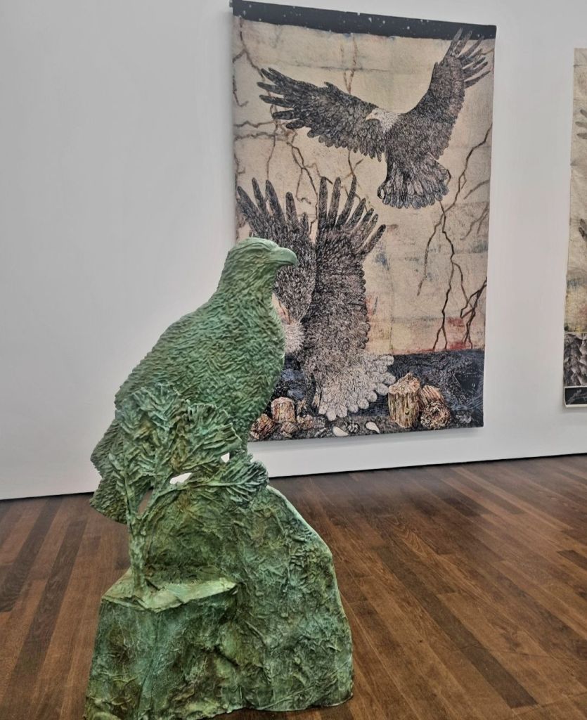 alle 3 Künstler haben heute Geburtstag und doppelte Nationalitäten: der russisch-französische Bildhauer ANTOINE PEVSNER (1886-1962), die ukrainisch-französische Malerin ALEXANDRA EXTER (1882-1944) und die deutsch-amerikanische Bildhaurin und Textilkünstlerin KIKI SMITH, geboren 1954 in Nürnberg. Pevsners „construction cinéthique“ sah ich 2024 in der Kunsthalle Mannheim, Exters Gemälde, bei dem man 2 kleine Hunde auf den 2. Blick erkennen kann, war eines der Beispiele ukrainischer Kunst in der Ausstellung „In the Eye of the Storm“ (2024) im Belvedere Museum in Wien, und Kiki Smith hatte im Arp Museum Bahnhof Rolandseck eine Einzelausstellung mit dem Namen „Verwobene Welten“, wo auch der Adler eine Rolle spielte.