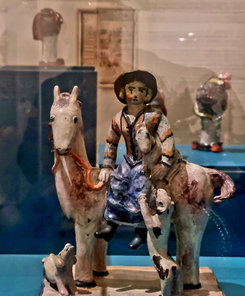 Die Keramikkünstlerin und Bildhauerin KITTY RIX (1901-1951) hätte heute ebenfalls Geburtstag. Ihr „Pferd mit Reiterin und Hunden“ fotografierte ich 2024 im Museum Ostwall im Dortmunder U . Es gehört zur Ausstellung „Tell these People who I am“, die noch über einen Monat läuft.