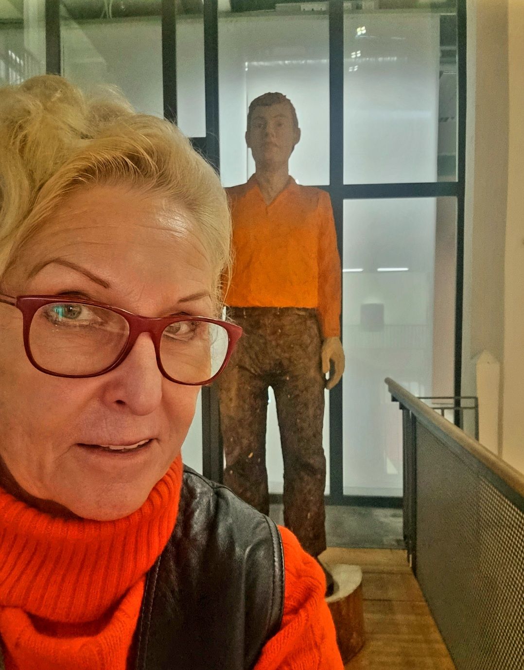 Weitere Geburtstagskinder sind der Bildhauer STEPHAN BALKENHOL, der heute 68 Jahre alt wird, und der Österreicher WILHELM THÖNY (1888-1944). Er malte Landschaften wie das New York Bild, das ich in der Albertina in Wien sah. Zu Balkenhols “ Großem Mann“ von 1993 passte ich farblich gut in dee Städtischen Galerie Karlsruhe.
