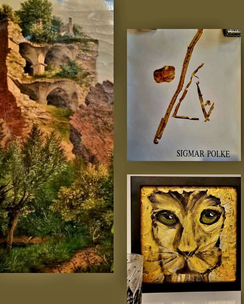 Die Farbe gold ist bei allen dreien zu finden: Geburtstag hätten heute der süddeutsche Landschaftsmaler CHRISTIAN PHILIPP KOESTER (1784-1851) und der überaus vielseitige zeitgenössische Künstler SIGMAR POLKE (1941-2010). Koesters Gemälde “ Gesprengter Turm des Heidelberger Schlosses“ von 1820 sah ich im letzten Sommer im Historischen Museum der Pfalz in Speyer . Polkes Plakat einer Ausstellung von 1988 ist in meinem Besitz. Das Sternzeichenbild „Goldener Löwe“, das ich vor einiger Zeit malte, hat gestern ein neues liebevolles Zuhause gefunden❣️