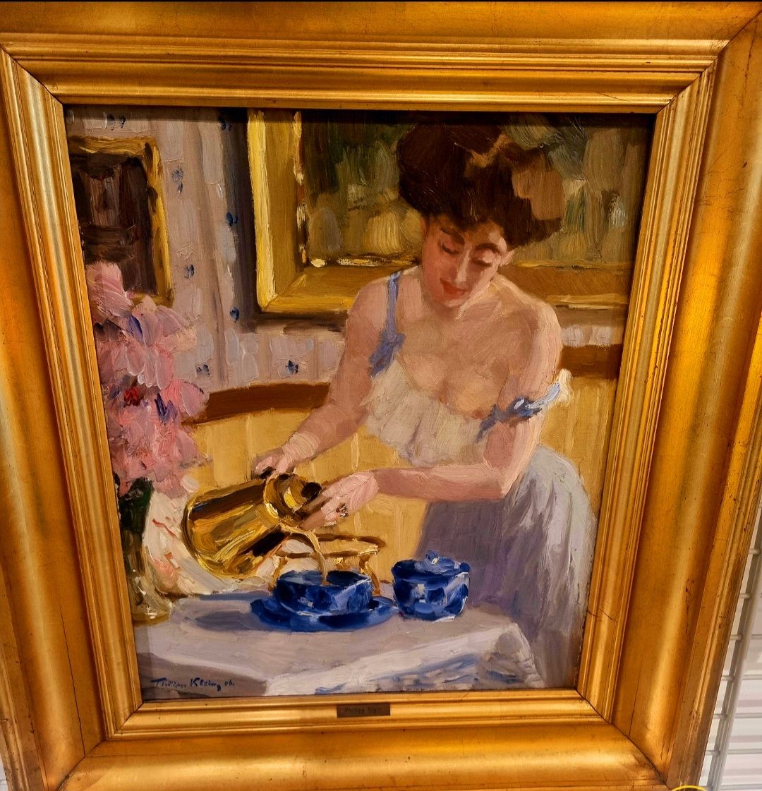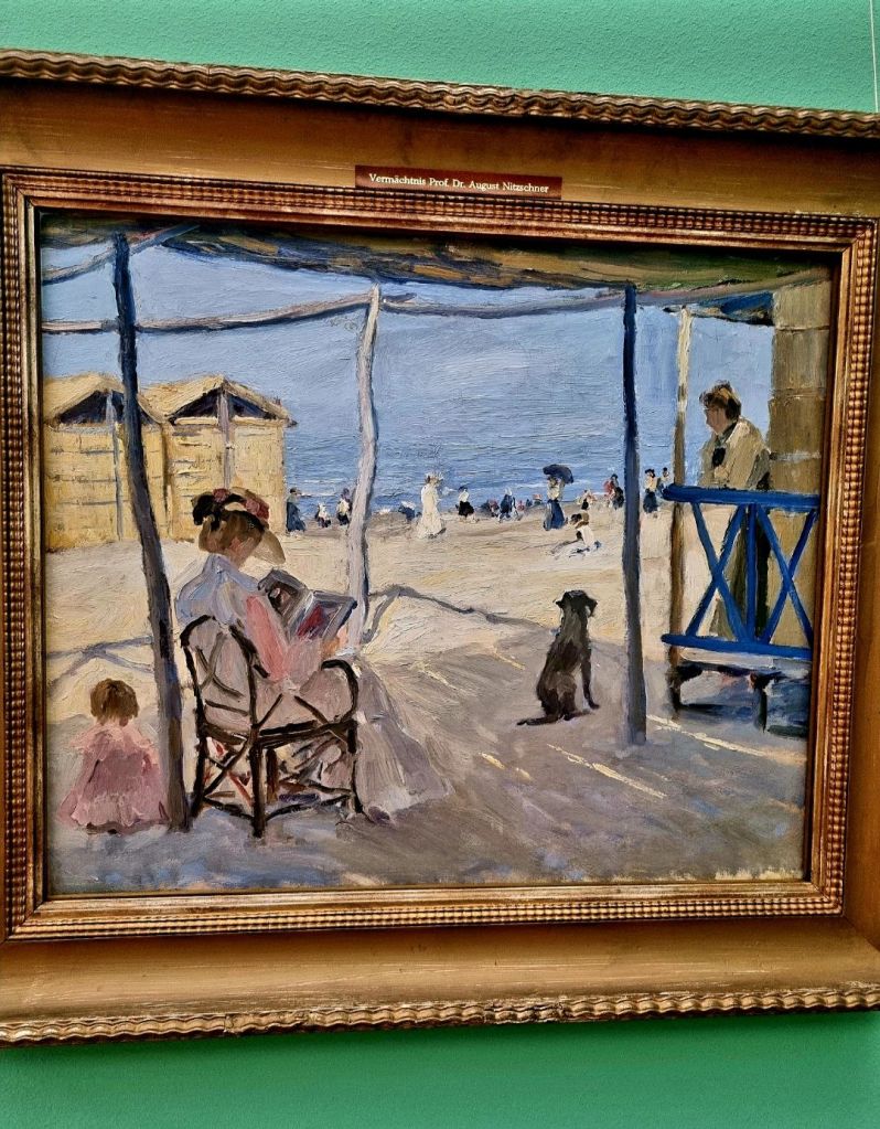 noch einmal auf: in der wunderschönen Ausstellung im Landesmuseum Hannover mit dem Titel „Frischer Wind – Impressionismus im Norden“ hing sein Bild „Am Strand von Viareggio“ aus demselben Jahr wie das Frühstücksbild (1906), und es verzauberte mich mit seiner flirrenden Sommeratmosphäre, den Farben und der Figur des Hundes, der sehnsuchtsvoll zum Strand schaut.