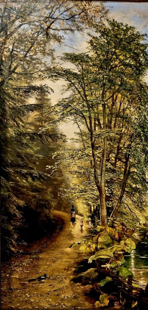 2 Künstler hätten heute Geburtstag: der norddeutsche Landschaftsmaler HINRICH WRAGE (1843-1912) und der italienische Maler von sog. Materialbildern ALBERTO BURRI (1915-1995). Wrages Waldwege finde ich legendär – 3 davon finden sich im Ostholstein-Museum Eutin – , so auch diese Bilder mit dem Titel „Waldweg mit Frau und Kindern“ und „Rast am Walde“. Die Farbigkeit von Burris Bild „Rosso“ von 1956 faszinierte mich in der Heidi Horten Collection in Wien im Mai 2024.