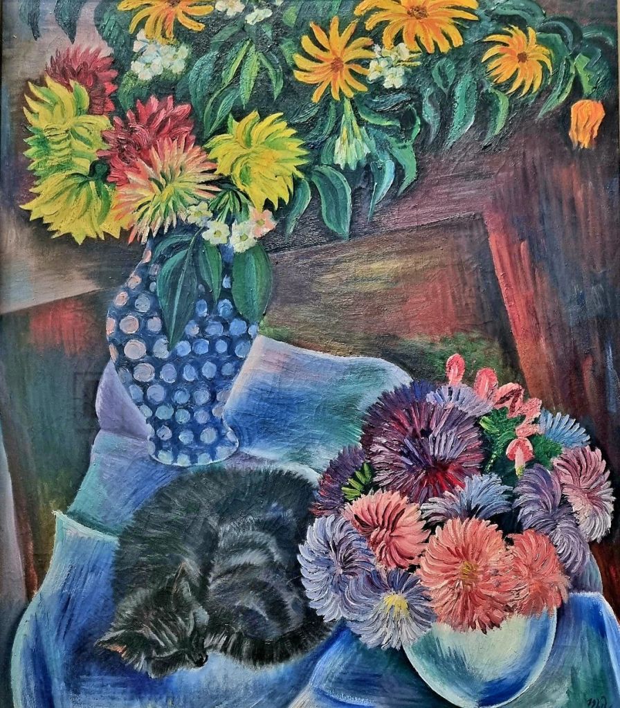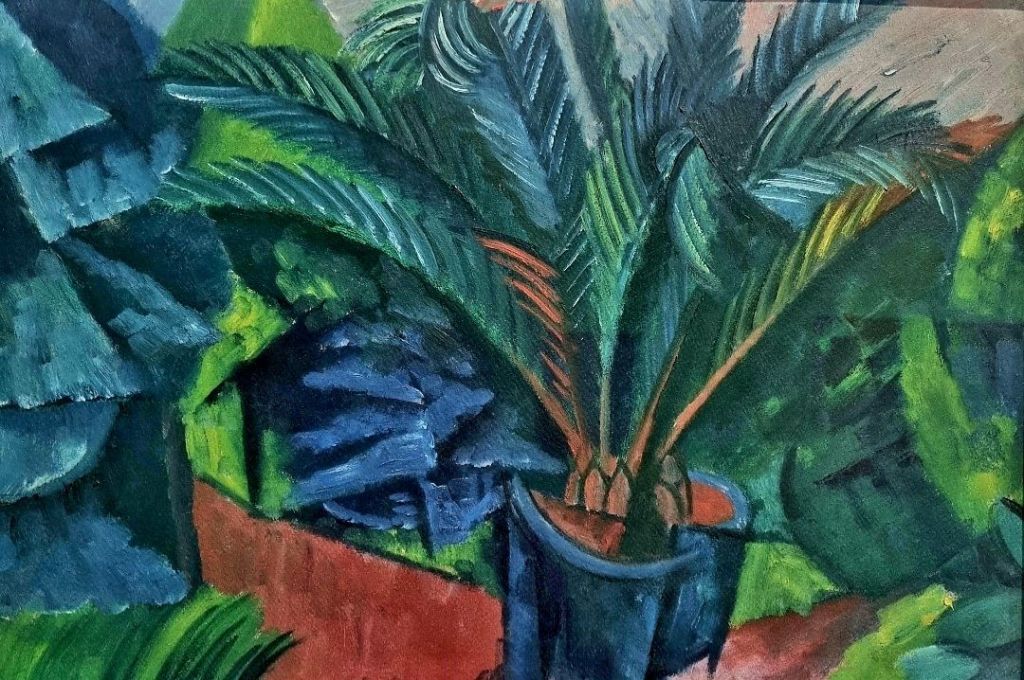 CONRAD FELIXMÜLLER (1897-1977) ist heute vor 48 Jahren nach einem ereignisreichen Leben und vielen gemalten Bildern im Stil des Expressionismus und der Neuen Sachlichkeit, von denen 160 als entartet von den Nationalsozialisten leider vernichtet wurden, an seinem Wohnort Berlin gestorben. Seine beiden Bilder „Herbstblumen mit Katze“ von 1922 und „Phönixpalme“ von 1918 sah ich vor wenigen Tagen im Landesmuseum Wiesbaden. Das Modell für die Pflanze stand im Anwesen seines Wiesbadener Sammlers Kirchhoff.