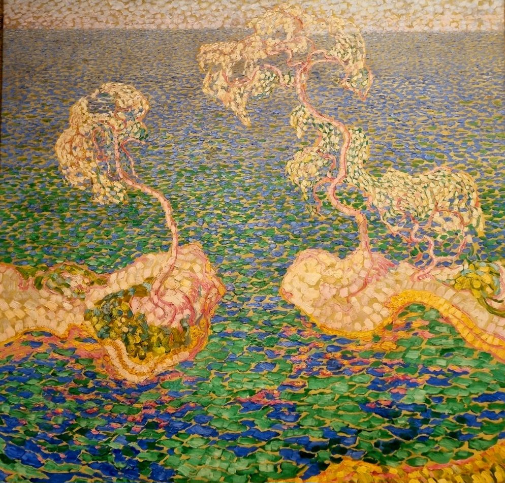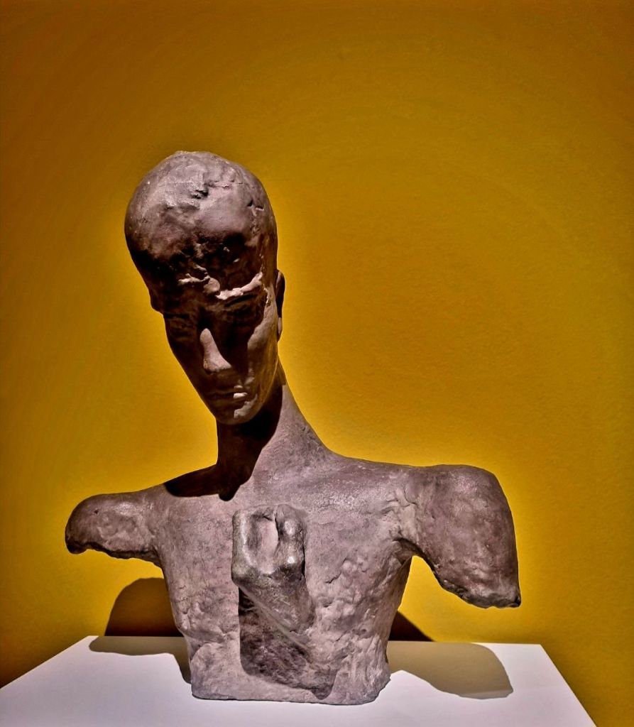 2 Köpfe präsentieren sich zunächst – meinen Kopf nicht mitgerechnet: ich stehe nur vor dem Bild „Abstrakter Kopf. Abend“, im Jahr 1931 vom heutigen Geburtstagskind ALEXEJ VON JAWLENSKY (1864-1941) gemalt. Der in Russland geborene Künstler lebte die letzten 20 Jahre seines Lebens in Wiesbaden, wo man im Landesmuseum eine Reihe seiner Bilder sieht, so auch das, vor dem ich vor wenigen Tagen dieses Selfie machte. Der 2. Kopf – „Kopf eines Denkers“ – aus Steinguss wurde 1918 vom Duisburger Bildhauer WILHELM LEHMBRUCK (1881-1919) geschaffen, dessen 106. Todestag heute ist. Er gilt als sein letztes Selbstportrait und drückt schon die quälenden Zweifel und Gedanken des durch Suizid aus dem Leben gegangenen Künstlers aus. Ich fotografierte auch diesen Kopf vor wenigen Tagen – allerdings im Museum Ostwall im Dortmunder U.