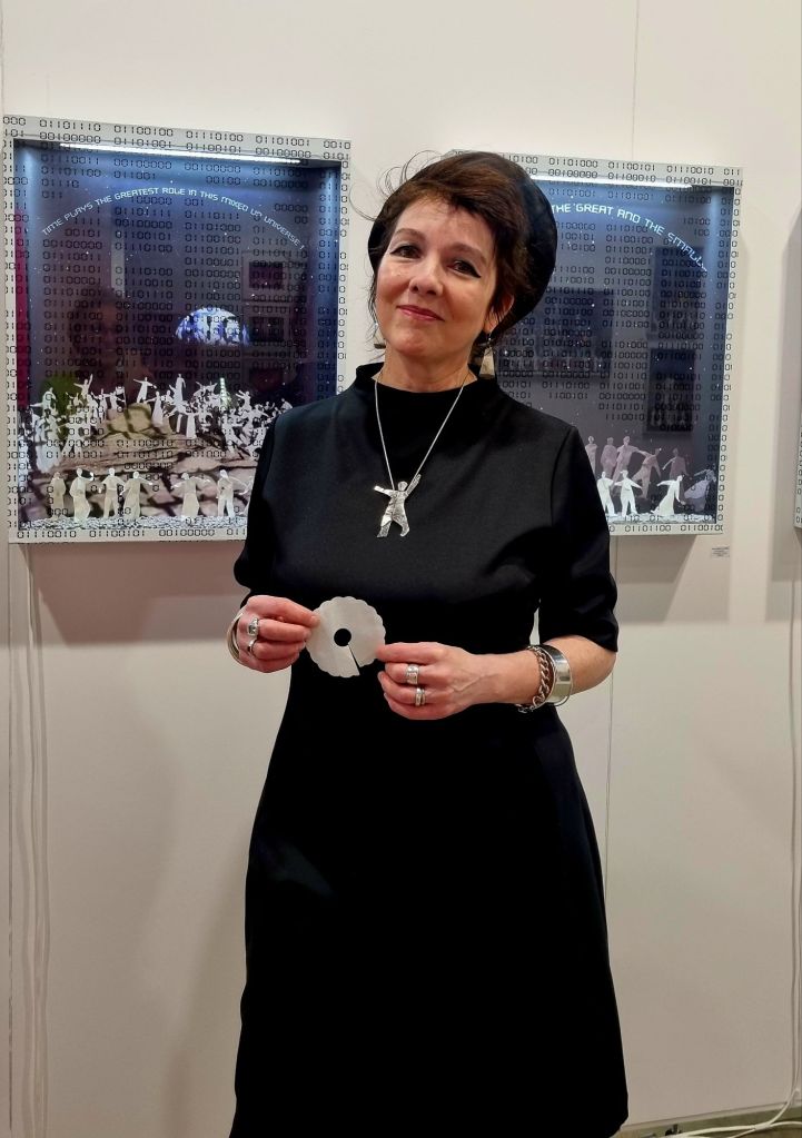 DOLORES FLORES, eine deutsch-amerikanische Künstlerin, die auf der Messe Discovery Art Fair in Köln auch selbst anwesend war und ihre Papierarbeiten-Installationen in der Komplexität, die sie aufweisen, auf Nachfrage erklären konnte, hat uns (ich war mit meiner Künstlerfreundin Helga Hoicke unterwegs auf der Messe) sehr gefallen.
