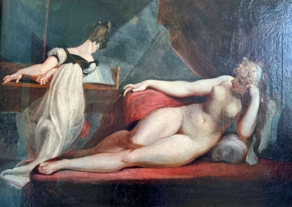 Der 1. Künstler ist heute vor 200 Jahren gestorben: der Schweizer JOHANN HEINRICH FÜSSLI (1741-1825). Sein Bild „Ruhender Frauenakt und Klavierspielerin“ von 1800 sah ich im Januar in einem meiner Lieblingsmuseen: Kunstmuseum Basel.Zwei Malerinnen hätten heute Geburtstag: die Französin ELISABETH-LOUISE VIGÉE LE BRUN (1755-1842), deren Bild „Lady Hamilton als Bacchantin“ besonders schön in der Ausstellung „Maestras“ im Arp Museum Bahnhof Rolandseck 2024 hing, und die Niederländerin JO(HANNA) KOSTER, deren „Mädchen mit Sonnenhut“ den Betrachter so intensiv anschaut, dass er/sie es nicht vergisst. Ich sah es im Landesmuseum Hannover im Januar.Der 4. Künstler des Tages, MARTIN VON MOLITOR (1759-1812), ein Wiener Landschafts- und Tiermaler, hat heute seinen 213. Todestag. Im Mai 2024 entdeckte ich in seinem Bild „Reiter und Hunde“ diese beiden Spielenden (Detail) im Albertina Museum seiner Heimatstadt.Das dritte Geburtstagskind ist der Amerikaner JOHN ANGUS CHAMBERLAIN (1927-2011), der als erster Künstler die Idee hatte (bereits 1957), Autoschrottteile in seine Skulpturen und Installationen einzubauen. Ein solch typisches Exemplar seiner Kunst sah ich vor wenigen Wochen im neuen Wiesbadener museum reinhard ernst vor dem Fenster.