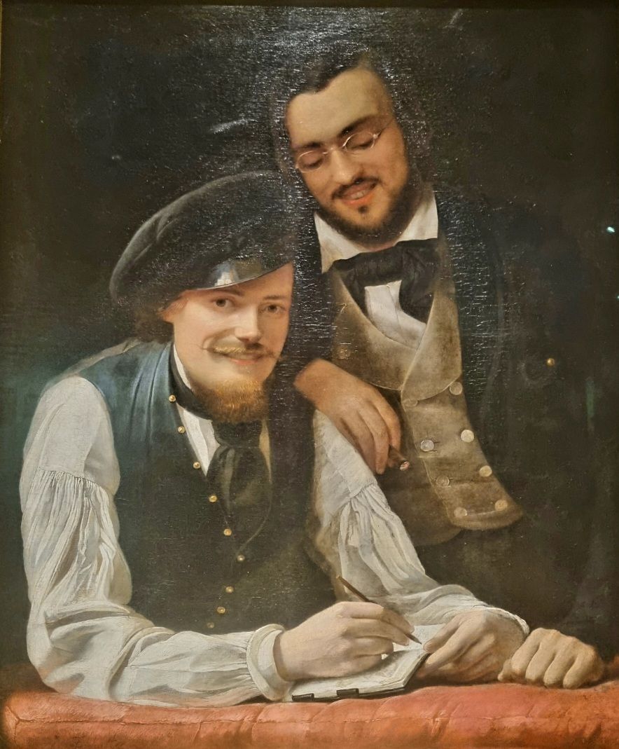 2 Geburtstagskinder gibt es heute: ein deutscher Portrait- und Landschaftsmaler aus dem Schwarzwald, der den 220. Geburtstag hätte – FRANZ-XAVER WINTERHALTER (1805-1873) – und ein italienischer Maler namens ENRICO PRAMPOLINI (1894-1956), auf den ich im Museo Novecento Firenze in der Ausstellung vom Oktober 2024 über die Künstler, die sich nicht dem Faschismus beugten, traf. Es heißt „Sintesi di Taormina“ (1939). Das Winterhalter-Bild ist ein „Selbstbildnis mit Bruder“ (1840), das ich in der Staatlichen Kunsthalle von Karlsruhe sah.