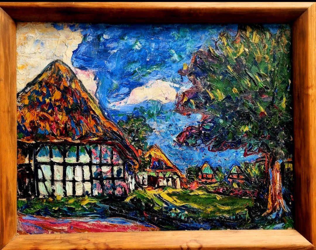 heute hätte der Expressionist ERNST LUDWIG KIRCHNER (1880-1938) den 145. Geburtstag. Gerne machte er mit Künstlerfreunden und Freundinnen Urlaub auf Fehmarn an der Ostsee. Die „Fehmarn Häuser“ von 1908 zeugen davon – gesehen vor kurzem im Städel Museum in Frankfurt am Main.Auch die Dortmunder Künstlerin Heike Onnertz hat heute Geburtstag❣️💐herzliche Glückwünsche❣️🍀💐🥂 – das schöne türkisfarbene Bild (hier aus der Ferne etwas unklar fotografiert, aber mit Geburtstagsblumen) – für mich eine Stadt am Meer – hängt seit Dezember im Musée Yvonne