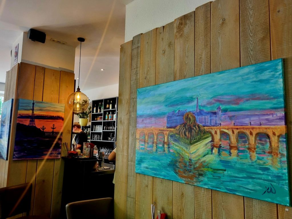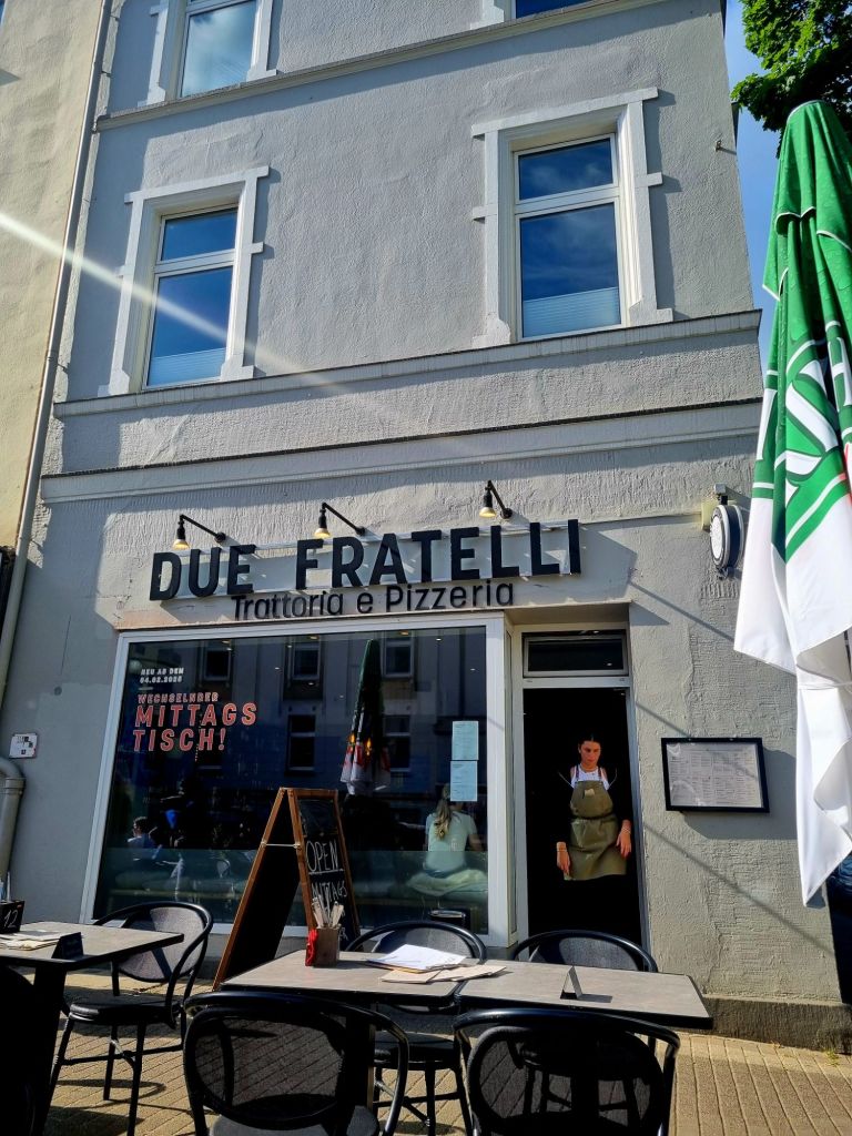 Im Due Fratelli im Dortmunder Klinikviertel (Beurhausstr. Ecke Humboldtstr.) gibt es nicht nur Mittagstisch (2 Gänge für den sensationellen Preis von zusammen 10,90) sondern es hängen wieder 14 Bilder von mir, die man übrigens auch erwerben kann. Dieses Mal sind es überwiegend Städtebilder in gewohnter Farbigkeit (alle Acryl auf Leinwand, versch. Formate), so dass der Betrachter während des genüsslichen Speisens auf Reisen gehen kann: von Florenz nach Thessaloniki, von Zürich nach London, vom Karlsruher Marktplatz nach Locarno und Paris. Lasst euch überraschen!