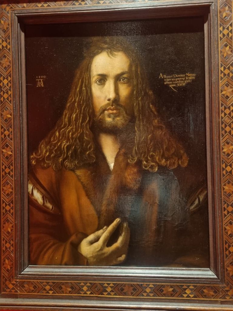 Da hätte ich doch tatsächlich beinahe einen großartigen und sehr berühmten Künstler vergessen, der heute sogar den 554. Geburtstag hätte. Und dabei war ich im letzten Dezember in seinem Wohnhaus in Nürnberg: ALBRECHT DÜRER (1471-1528). Seine Selbstbildnisse sind legendär, 3 davon sind hier zu sehen – von 1493, 1498 und 1500. Was für ein schöner Mensch er war und wie gut er schon im Alter von 22 Jahren malen konnte! Allerdings hängen im Dürerhaus in Nürnberg nur Kopien – sehr gut von anerkannten Künstlern im Auftrag für die verkauften Originale angefertigt (das 1. von Friedrich Bosch, das 2. von Francisco Nuñez Losada und das 3. von Carl Jäger)