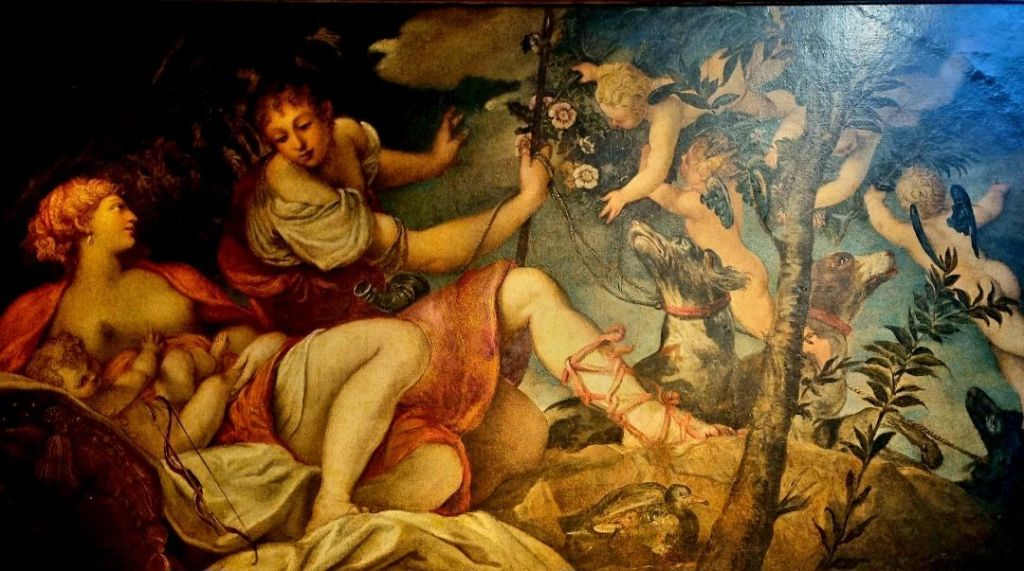 -als erster ist da JACOPO TINTORETTO (1518 oder 1519-1594). Zwei seiner Werke sah ich im letzten Herbst in Florenz: das Portrait des Großkanzlers von Venedig hing im Palazzo Pitti, die schönen Hunde sind ein Detail von „Venus und Adonis“ aus der Gallerie degli Uffizi.Auch LOUISE BOURGEOIS (1911-2010) ist am letzten Maitag gestorben. Die französisch-amerikanische Bildhauerin und Malerin, die bis zum Schluss gearbeitet hat – bis ins 99. Lebensjahr – malte ein Jahr vor ihrem Tod das Bild „Les Fleurs“, das ich in einer großen Ausstellung der Künstlerin im Museo Novecento Firenze im Oktober 2024 sah.