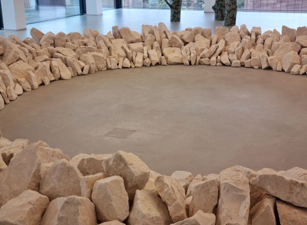 3 Geburtstagskindern kann man heute gratulieren: dem Bildhauer JOHANNES BRUS, der das schöne „Rhinoceros“ vor dem Kunstpalast, Düsseldorf 2002 erschaffen hat und heute seinen 83. Geburtstag feiert, dem britischen Land Art Künstler RICHARD LONG, der heute 80 Jahre wird und dessen „Spring Circle“ wir im vorigen Sommer in der Kunsthalle Mannheim bestaunten, und dem kinetischen Künstler JÖRG WIELE, der heute den 74. Geburtstag feiert. Sein bewegliches „Scheibenmandala“ sah ich in Dortmund, im Museum Ostwall im Dortmunder U.