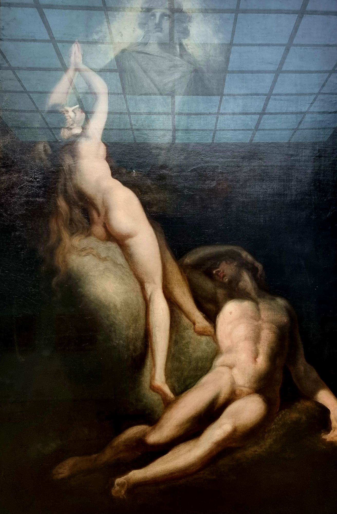 Gerade habe ich in der Hamburger Kunsthalle noch einen perfekten männlichen Akt für den 11. Juni gefunden: „die Erschaffung Evas“ vom Schweizer Maler JOHANN HEINRICH FÜSSLI (1741-1825). Nichts geht über seine supersinnlichen Akte. Leider ist der liebe Gott ganz oben durch Spiegelung vom Geschehen abgetrennt. Das passt aber auch irgendwie😉