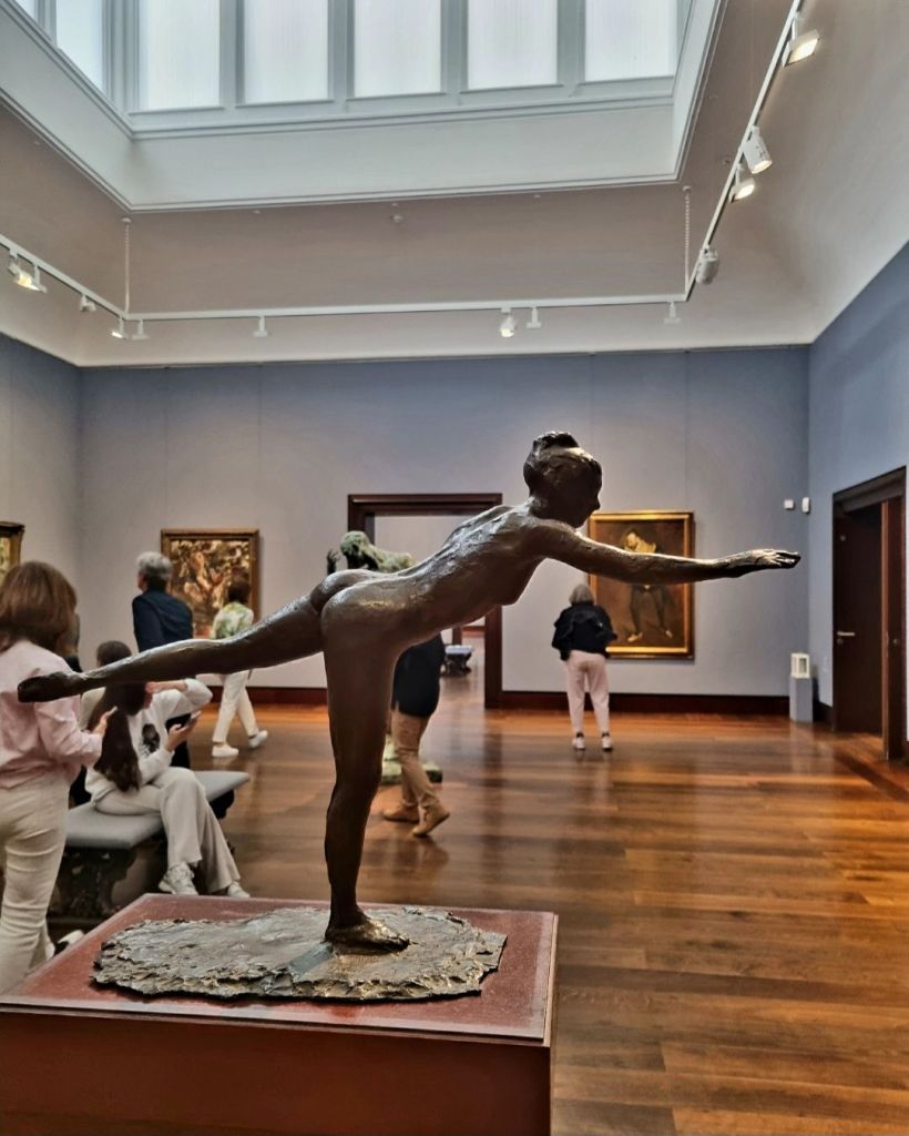 Der französische Impressionist EDGAR DEGAS (1834-1917) hätte heute Geburtstag. Er hat nicht nur oft Tänzerinnen gemalt, sondern Tänzerinnen standen auch oft Modell für seine Bronzen. Man möchte sich nicht vorstellen, wie anstrengend die Position für das Modell der „Großen Arabeske“ war, die ich im Juni in der Hamburger Kunsthalle sah.