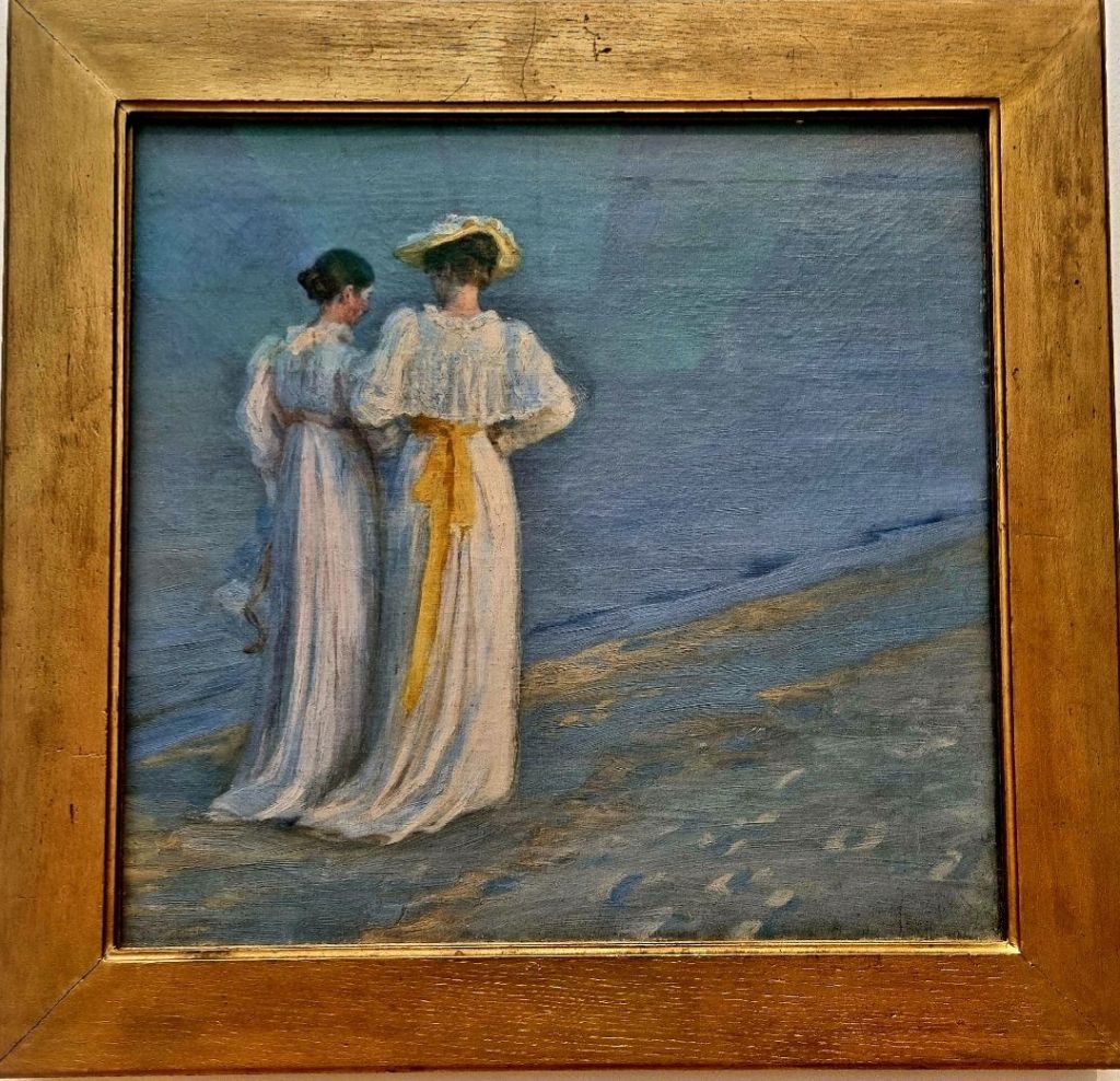4 Künstlern gilt es heute zu gedenken – 3, die vom 19. ins 20. Jahrhundert hinein wirkten und einer aus dem Jahrhundert davor, 3 Geburtstage und ein Todestag. Die Werke, die ich von allen 4 Künstlern sah, waren so hübsch gerahmt (in einem – SEGAL – setzt der Rahmen sogar das Bild fort), dass ich sie im Foto belassen habe. Es beginnt chronologisch mit dem deutschen Maler PHILIPP OTTO RUNGE (1777-1810), dessen „Selbstbildnis“ ich im Juni in der Hamburger Kunsthalle fotografierte. Dann geht es mit dem 120. Todestag des Franzosen JEAN JACQUES HENNER (1829-1905) weiter, der in Italien Preise bekam und länger in Florenz und Rom malte, so auch die „italienische Landschaft“, die ich 2017 in einem Pariser Museum fotografierte. Mein absolutes Lieblingsbild ist das der beiden Malerfreundinnen am Meer, gemalt vom dänisch-norwegischen Maler PEDER SEVERIN KRØYER (1851-1909) aus der Künstlerkolonie Skagen. Ich sah es und mehrere andere schöne Bilder von ihm in der Ausstellung über „Impressionismus im Norden“ im Landesmuseum Hannover im vergangenen Januar. Dann bleibt noch der 150. Geburtstag des rumänischen Malers ARTHUR SEGAL (1875-1944) zu nennen, dessen kubistisches Bild ich im Dezember 2024 im Museum Ludwig Köln sah.