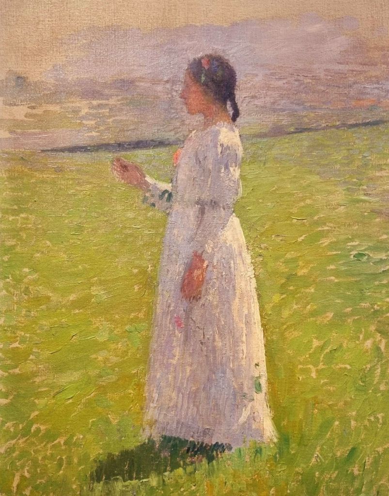die die Jahrhunderte und das Geburtstagsdatum teilten, mit knapp 20 Jahren Unterschied: der deutsche Historienmaler und Professor FERDINAND KELLER (1842-1922) und der französische Neo-Impressionist HENRI MARTIN (1860-1943). Kellers brasilianische Landschaft sah ich im vergangenen Februar in der Staatlichen Kunsthalle Karlsruhe und das verträumte Frauenbildnis von Martin im Juni in der Hamburger Kunsthalle.