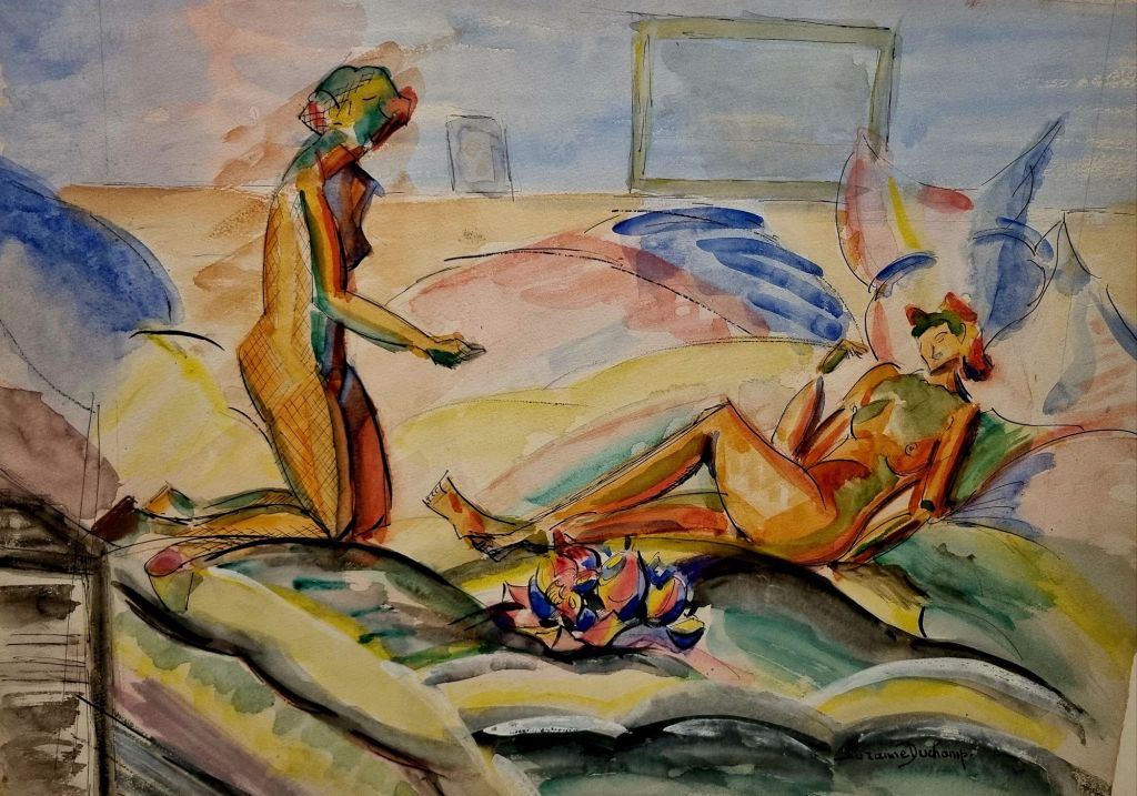 Nur noch bis zum 7. September kann man die für mich sehr interessante Einzel-Retrospektive von SUZANNE DUCHAMP (1889-1963) sehen. Sie lohnt sich: kennt man SUZANNE doch meistens als Teil einer Gruppe (Dada und Duchamp-Familie: alle 3 Brüder wurden berühmte Künstler), lernt man hier auch die beachtenswert individuelle Kunst, von ihr als „subjektive Kunst“ bezeichneten Werke kennen, die sie ganz früh ((um 1912) und zwischen 1922 und 1963 geschaffen hat – auch die reinen Landschaftsbilder während des Krieges und die Hinwendung zur Abstrakrion in den 50ern.